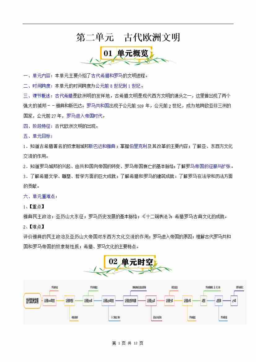 第二单元 古代欧洲文明【速记清单】