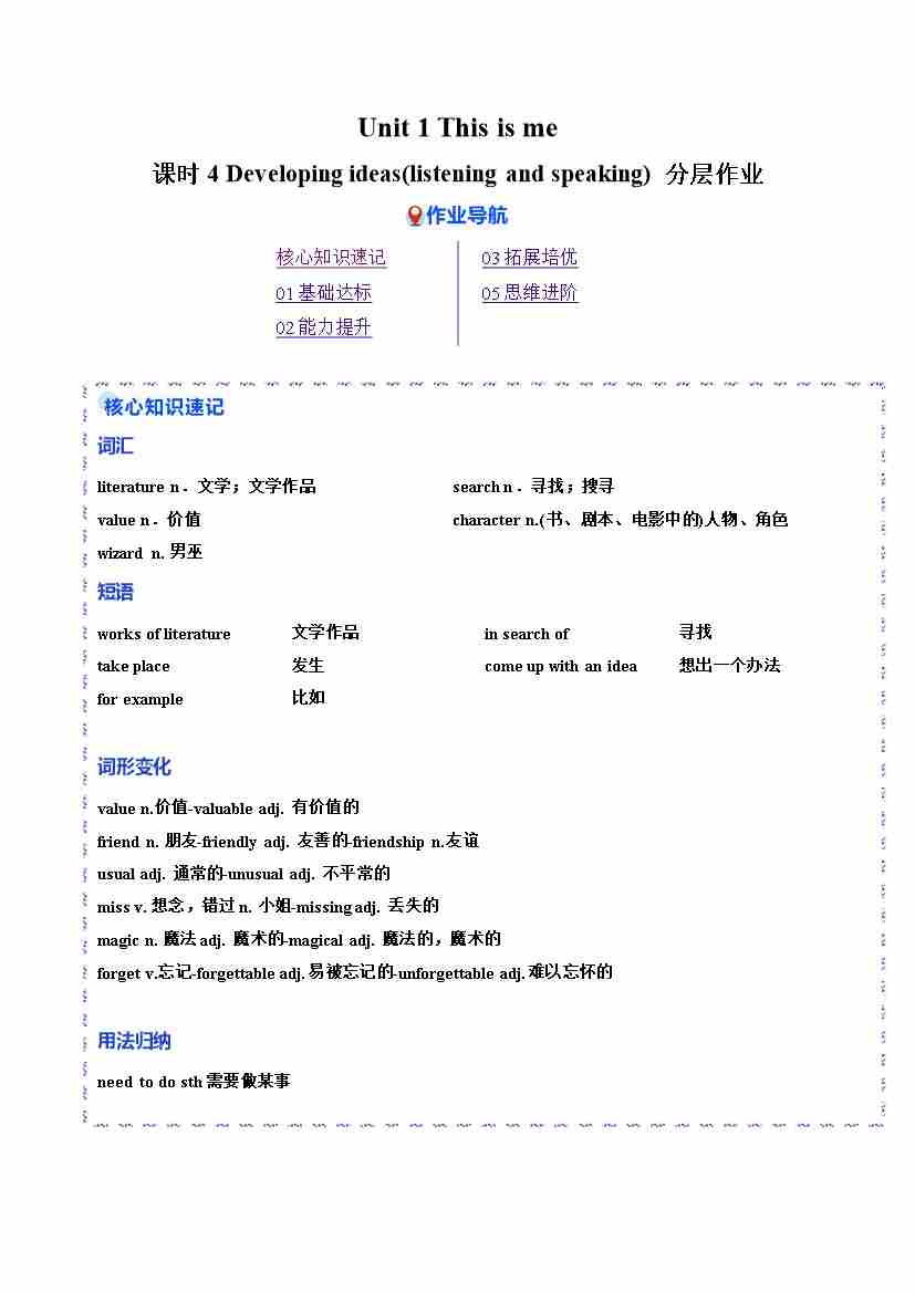 Unit 1 课时4 Developing ideas(Listening and speaking)(分层作业)(原卷版)