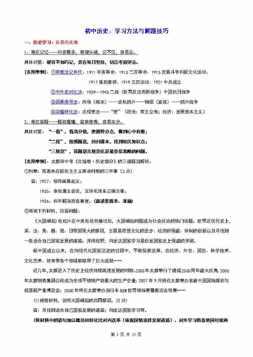 初中历史:学习方法与解题技巧-九上历史-统编