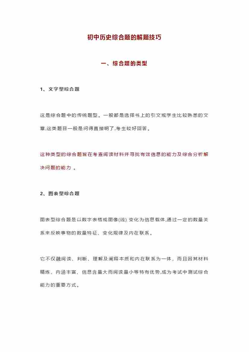 初中历史:综合题解题技巧-九上历史-统编