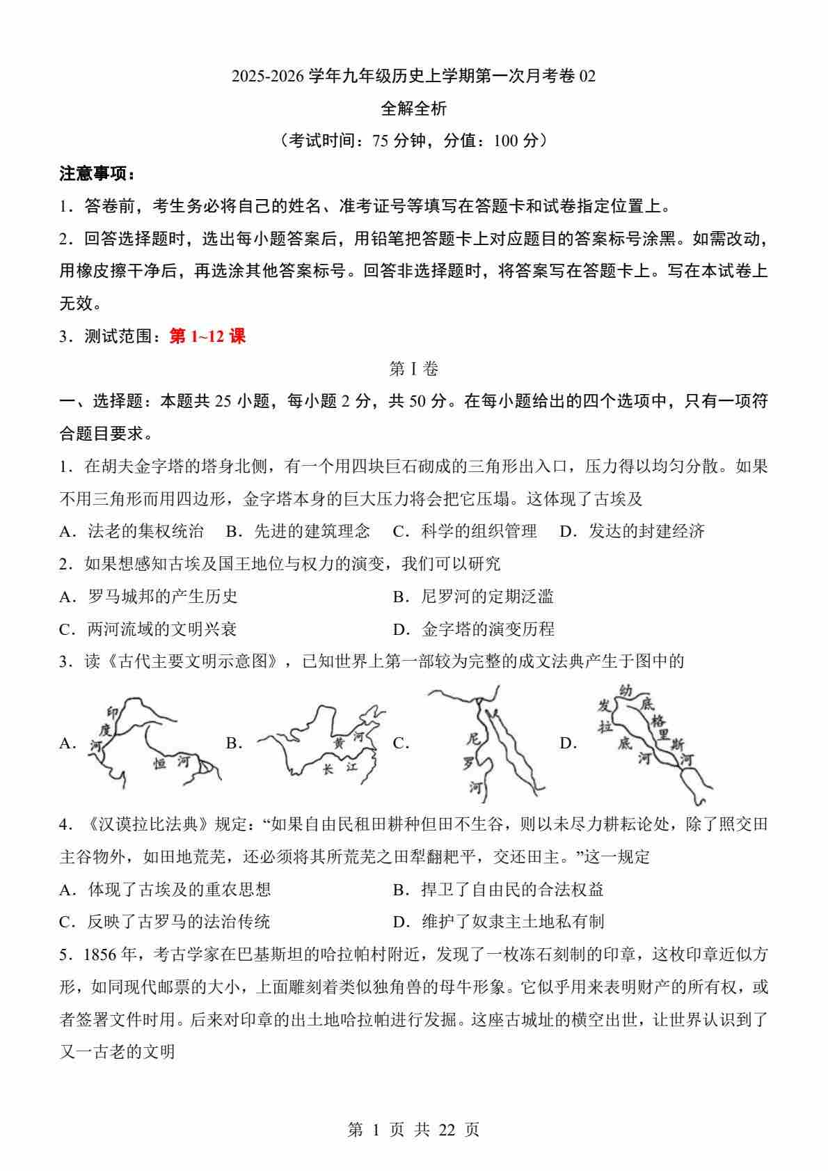 第一单元 古代亚非文明【单元测试·综合检测卷】单元速记·巧练