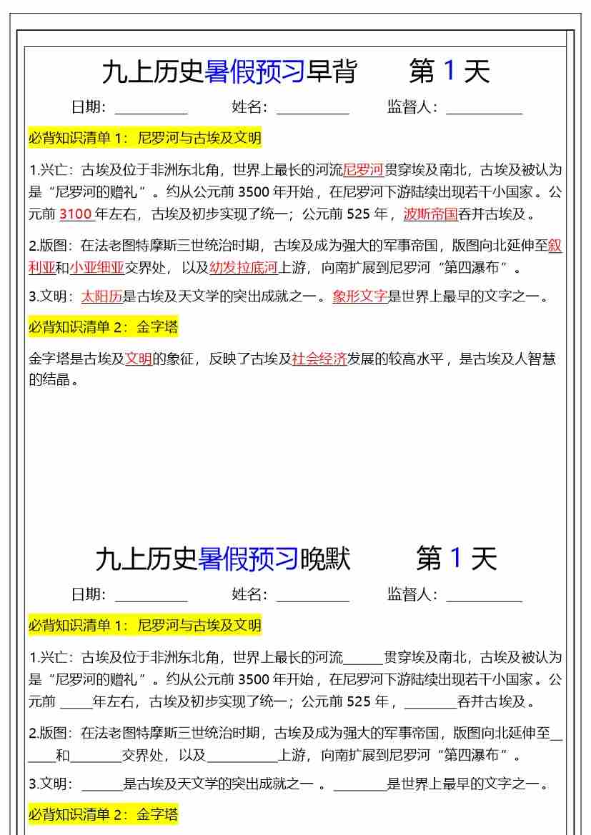 第一单元 古代亚非文明【单元测试·考点梳理卷】单元速记·巧练