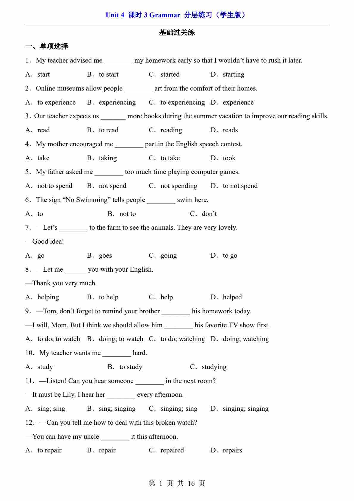 Unit 4 课时3 Grammar(分层练习)-外研版-八上英语