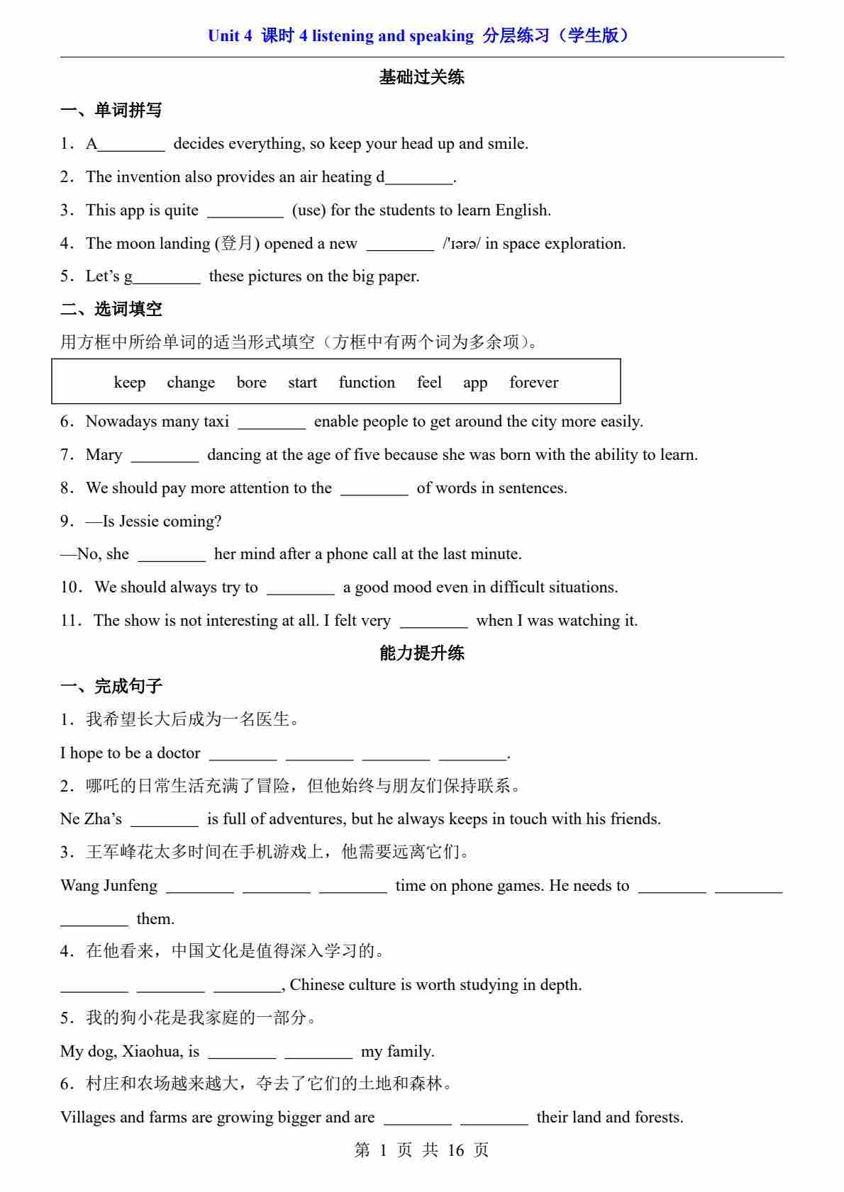 Unit 4 课时4 Listening and speaking(分层练习)-外研版-八上英语