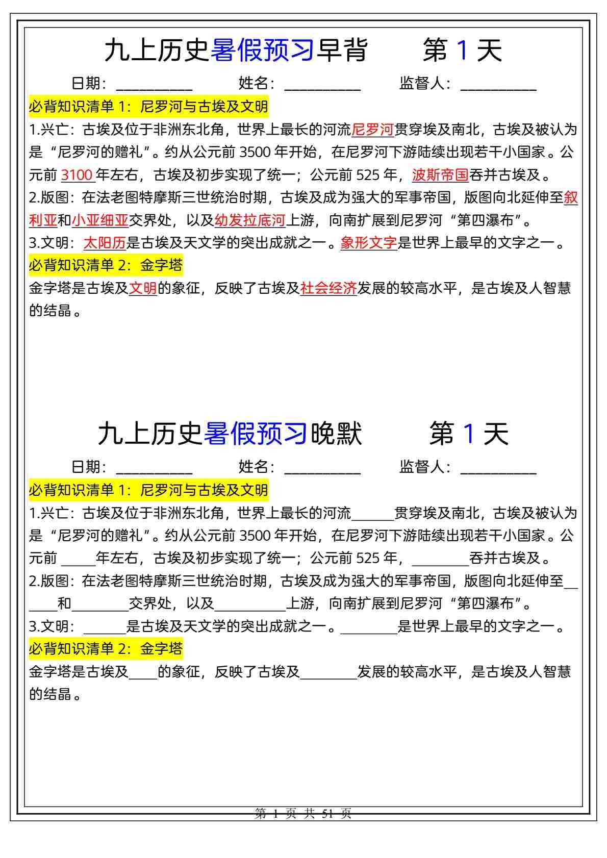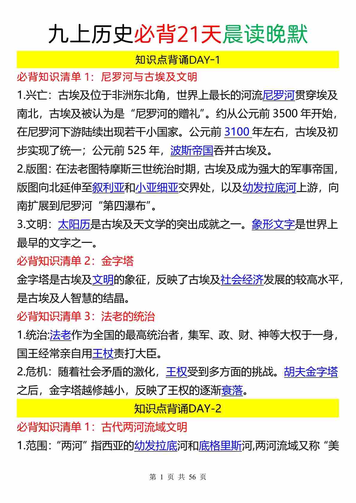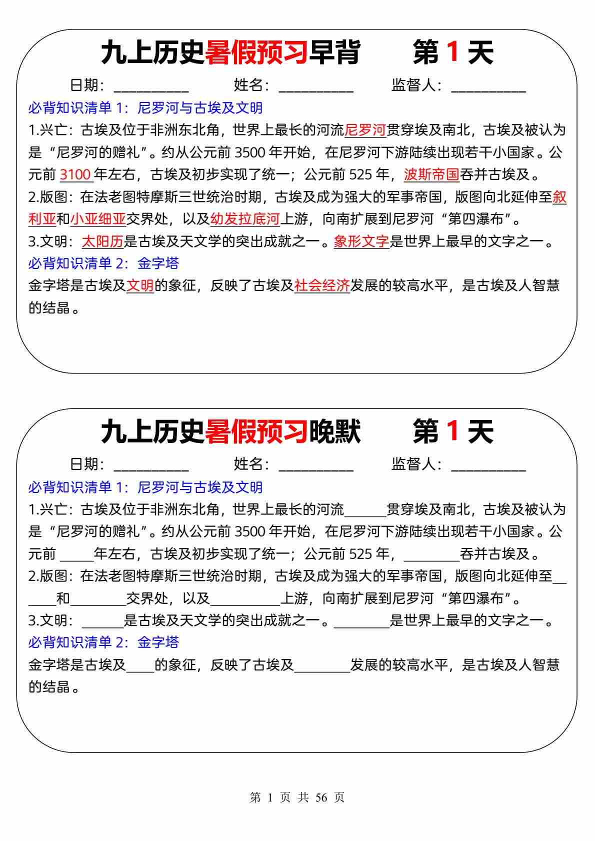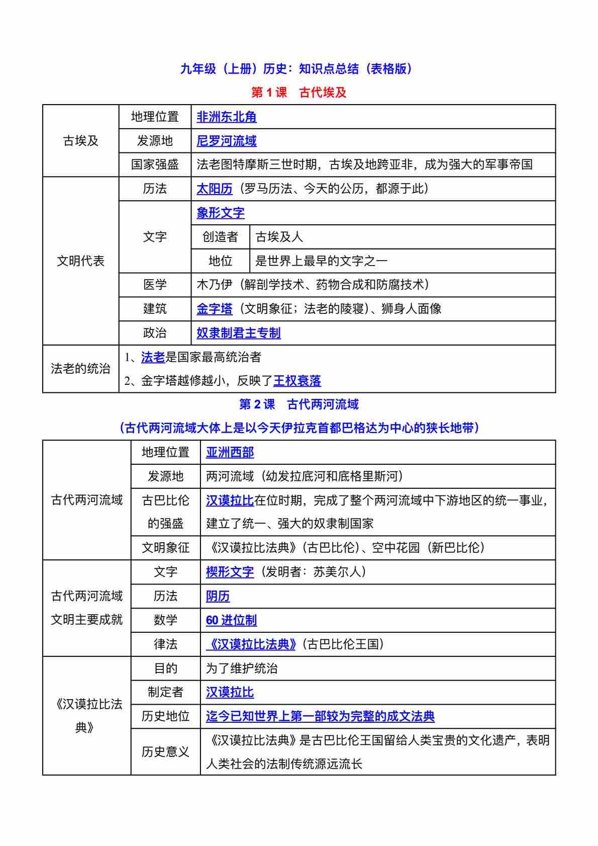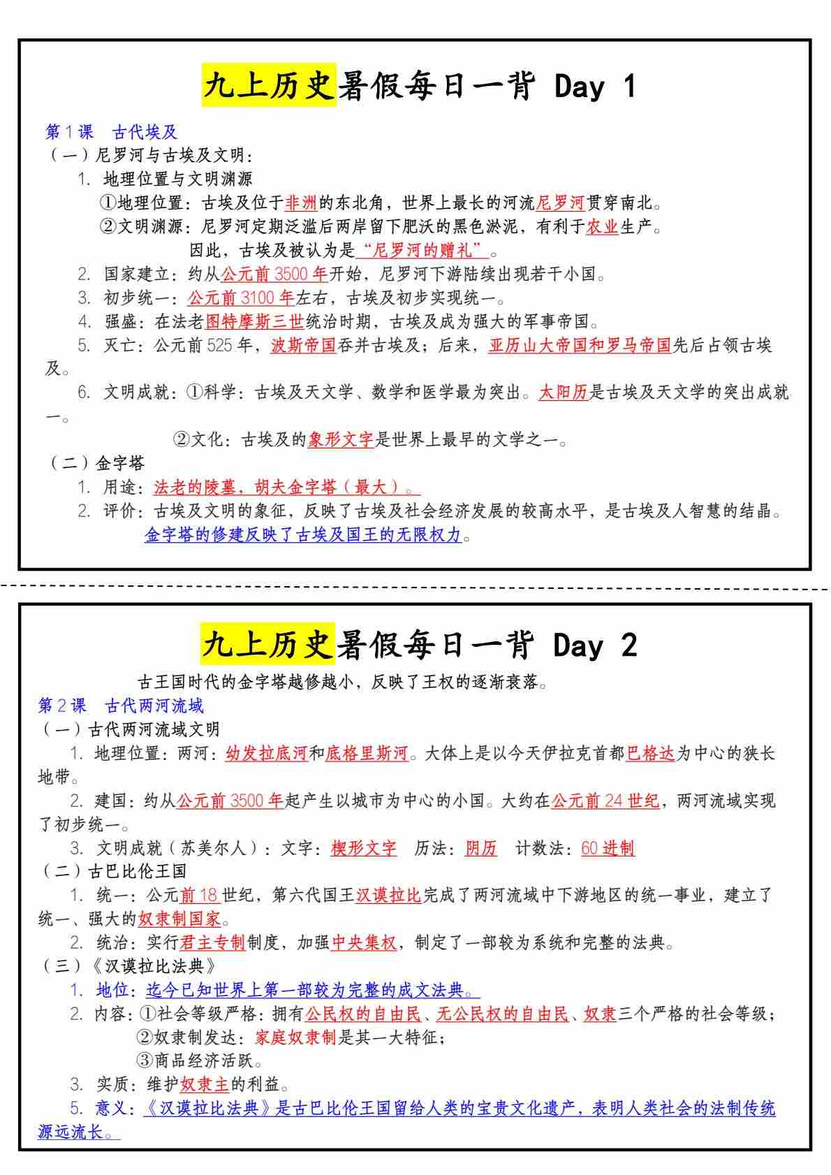 九年级(上册)历史问答式知识点汇总,暑期提前掌握!