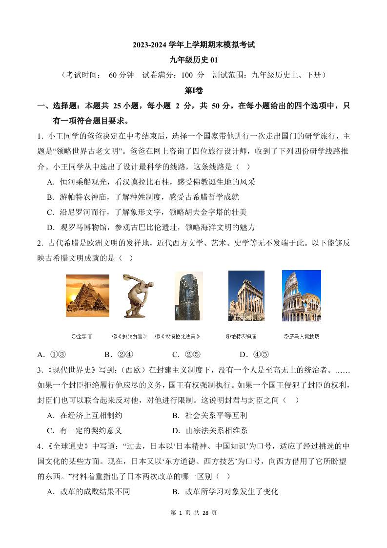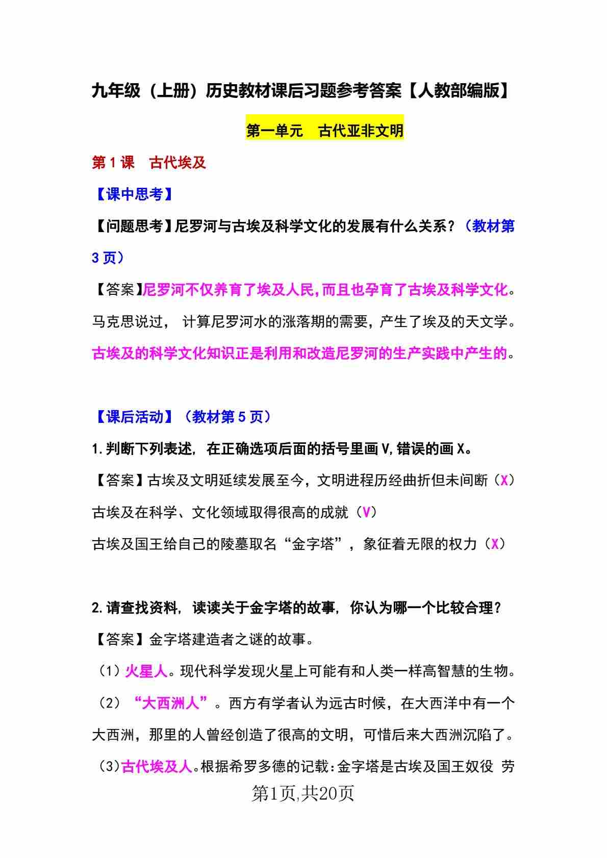 九年级(上册)历史教材课后习题参考答案【人教部编版】