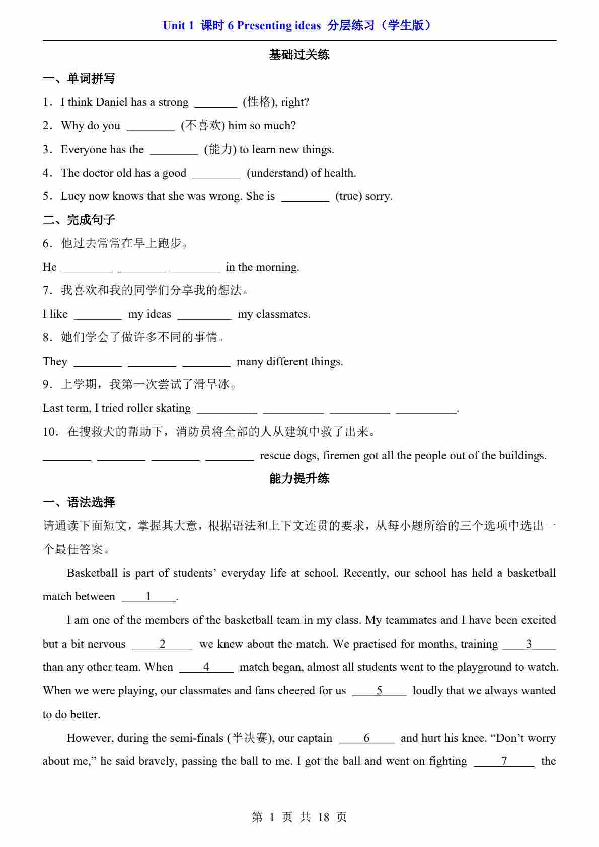 Unit 1 课时6 Presenting ideas(分层练习)-外研版-八上英语