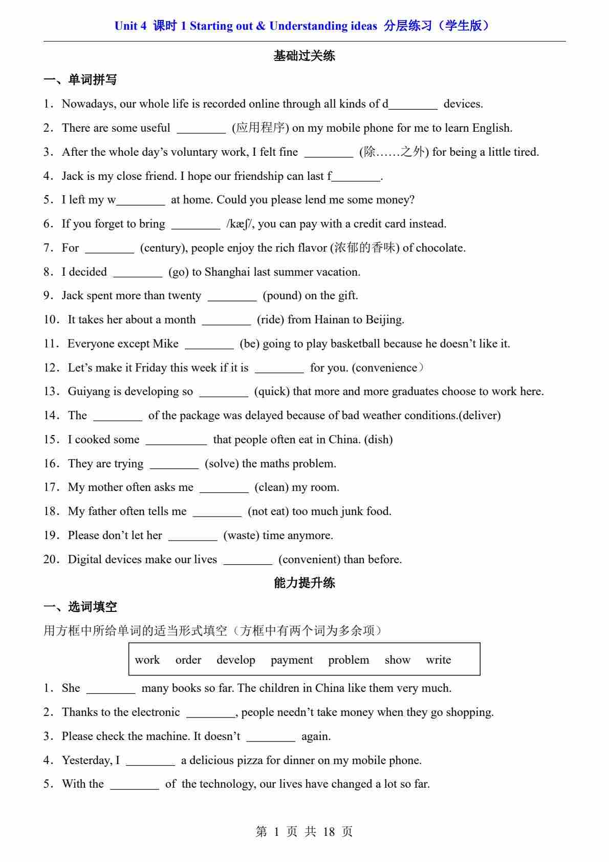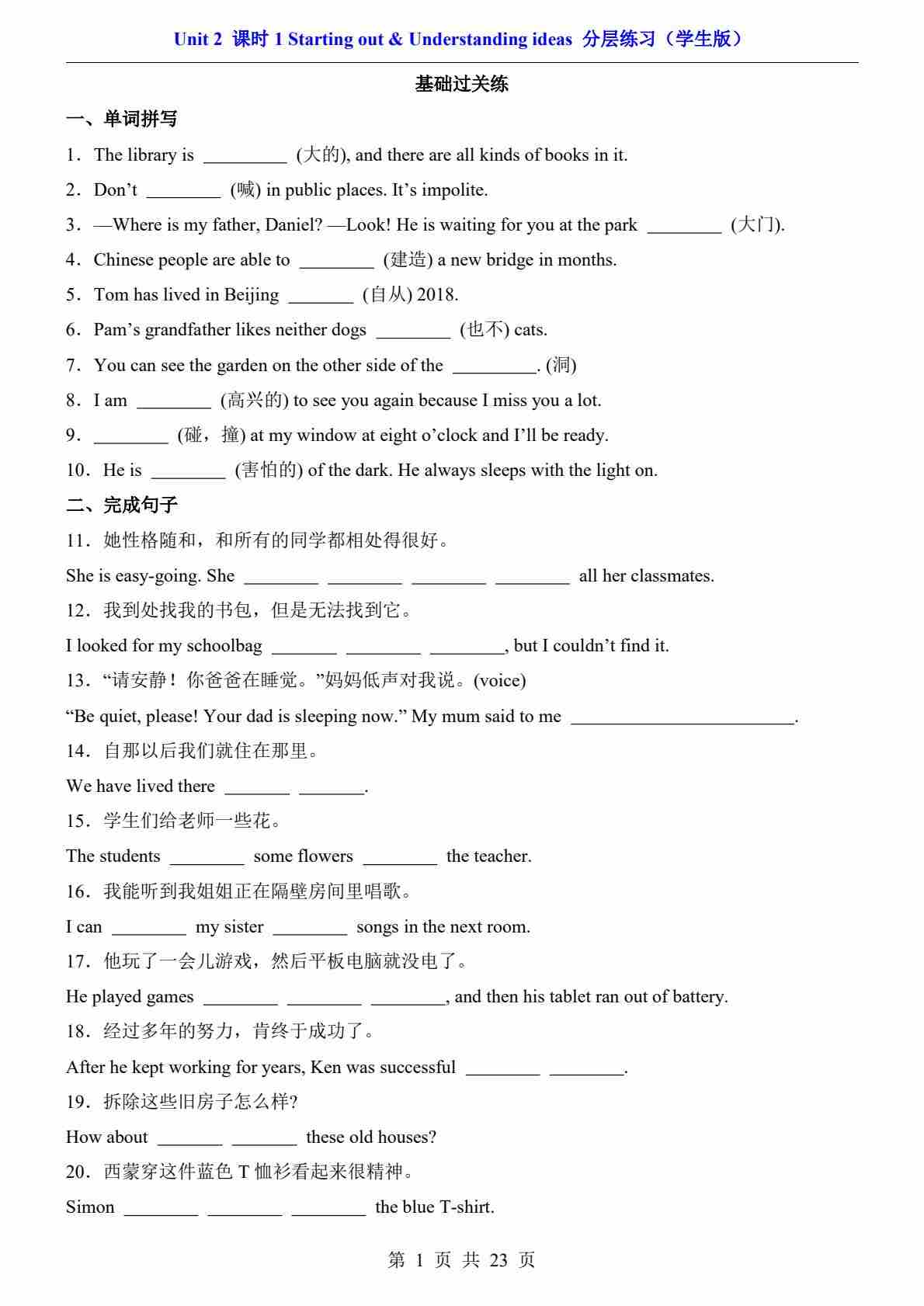 Unit 2 课时1 Starting out -- Understanding ideas(分层练习)-外研版-八上英语