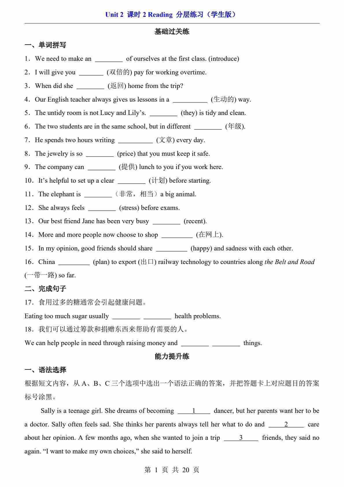 Unit 2 课时2 Reading(分层练习)-外研版-八上英语