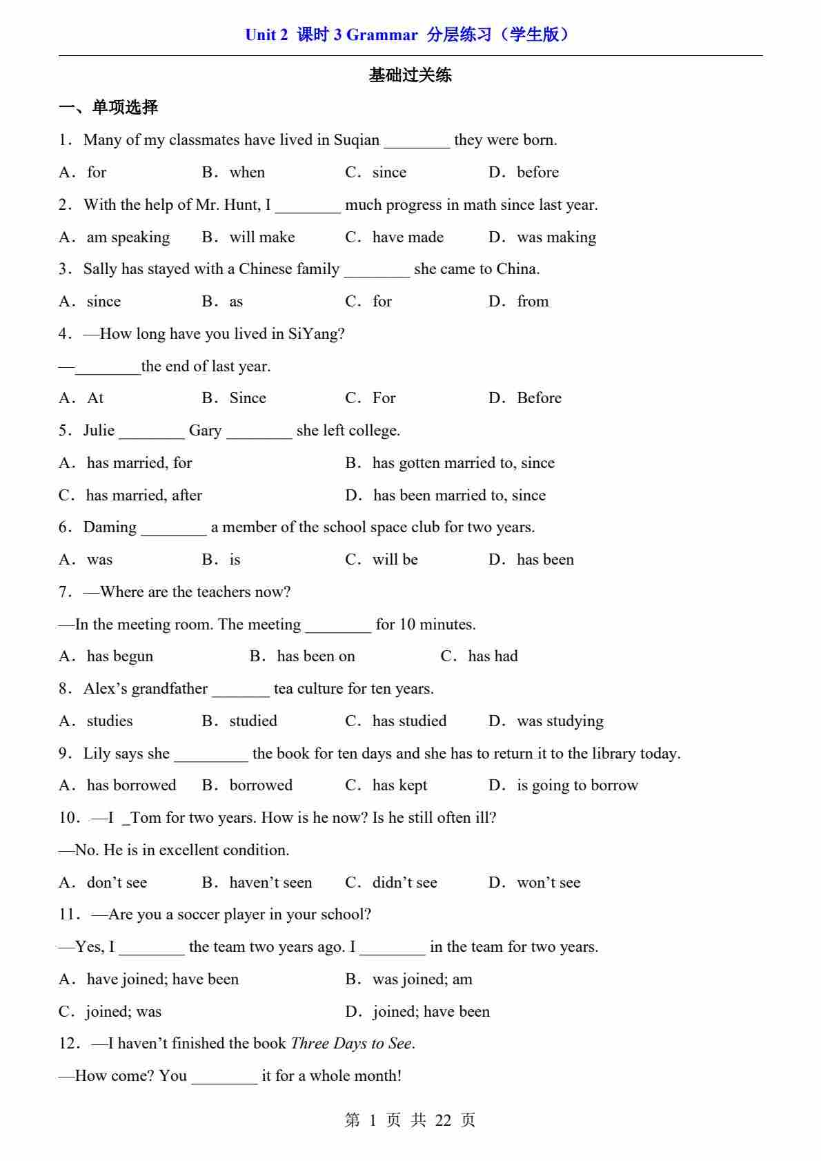 Unit 2 课时3 Grammar(分层练习)-外研版-八上英语