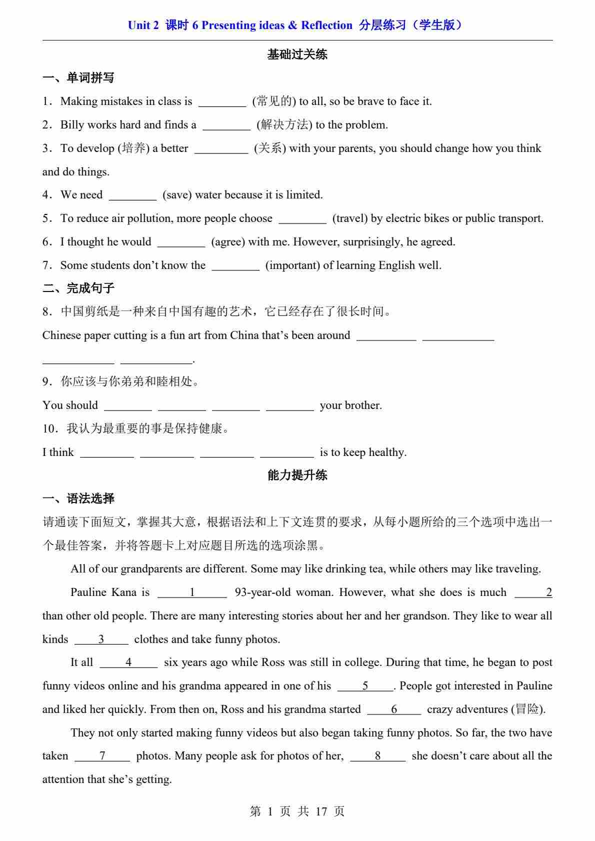 Unit 2 课时6 Presenting ideas -- Reflection(分层练习)-外研版-八上英语