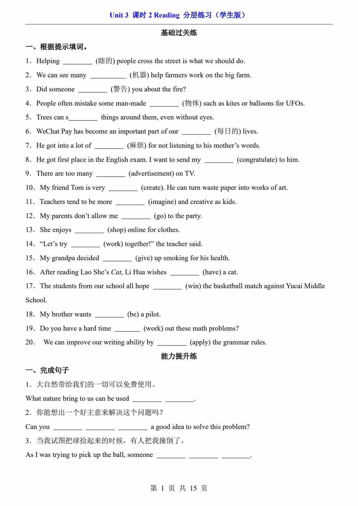 Unit 3 课时2 Reading(分层练习)-外研版-八上英语