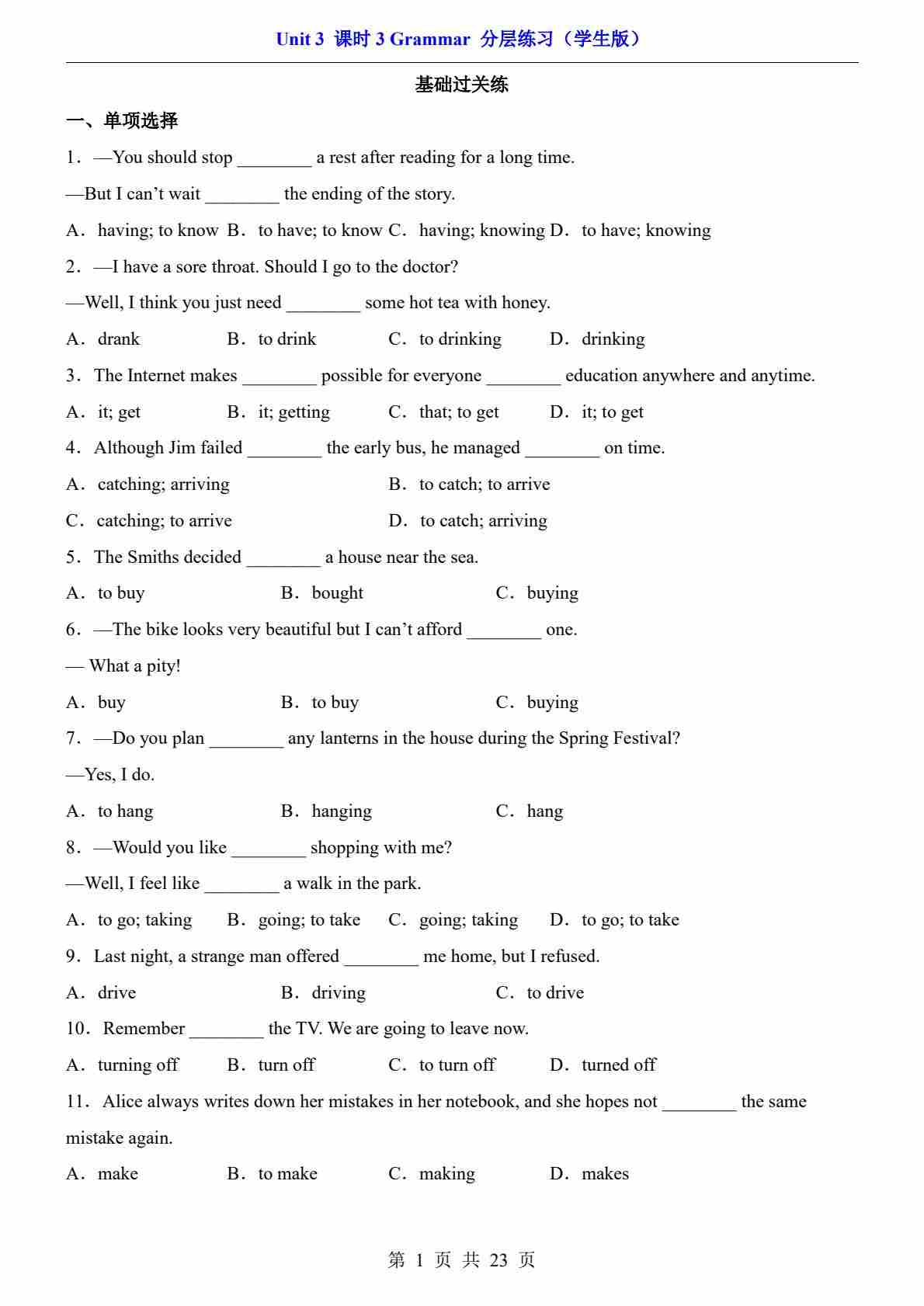 Unit 3 课时3 Grammar(分层练习)-外研版-八上英语