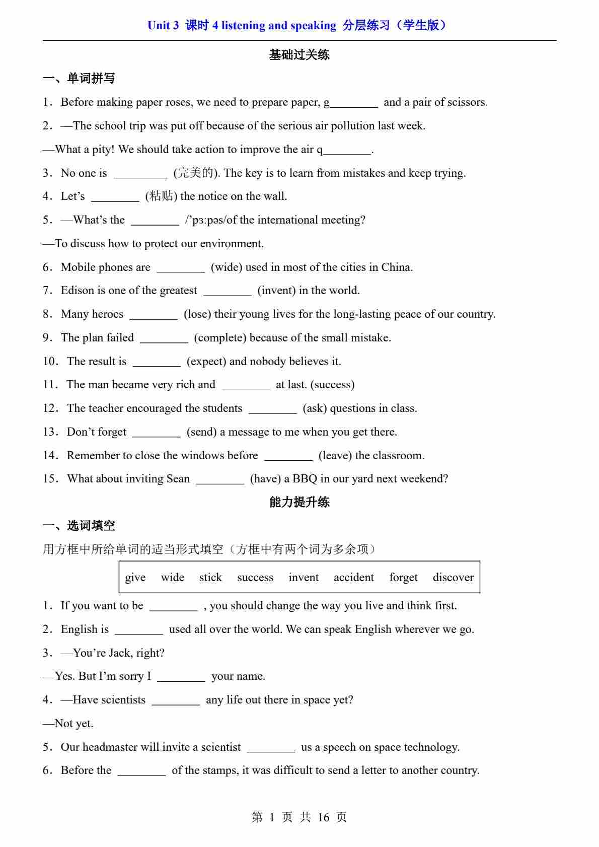 Unit 3 课时4 Listening and speaking(分层练习)-外研版-八上英语