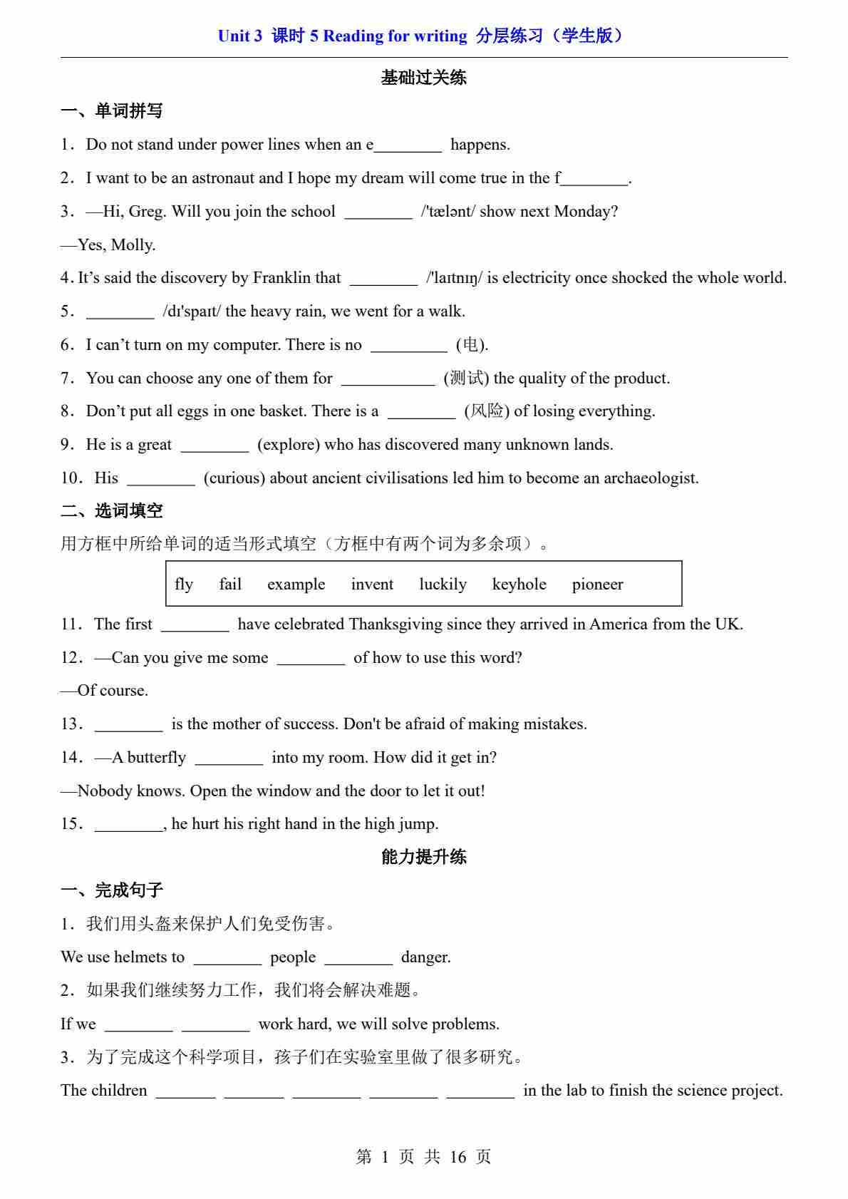 Unit 3 课时5 Reading for writing(分层练习)-外研版-八上英语