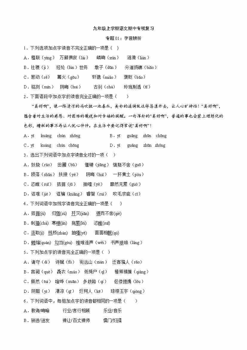 专题01:字音辨析