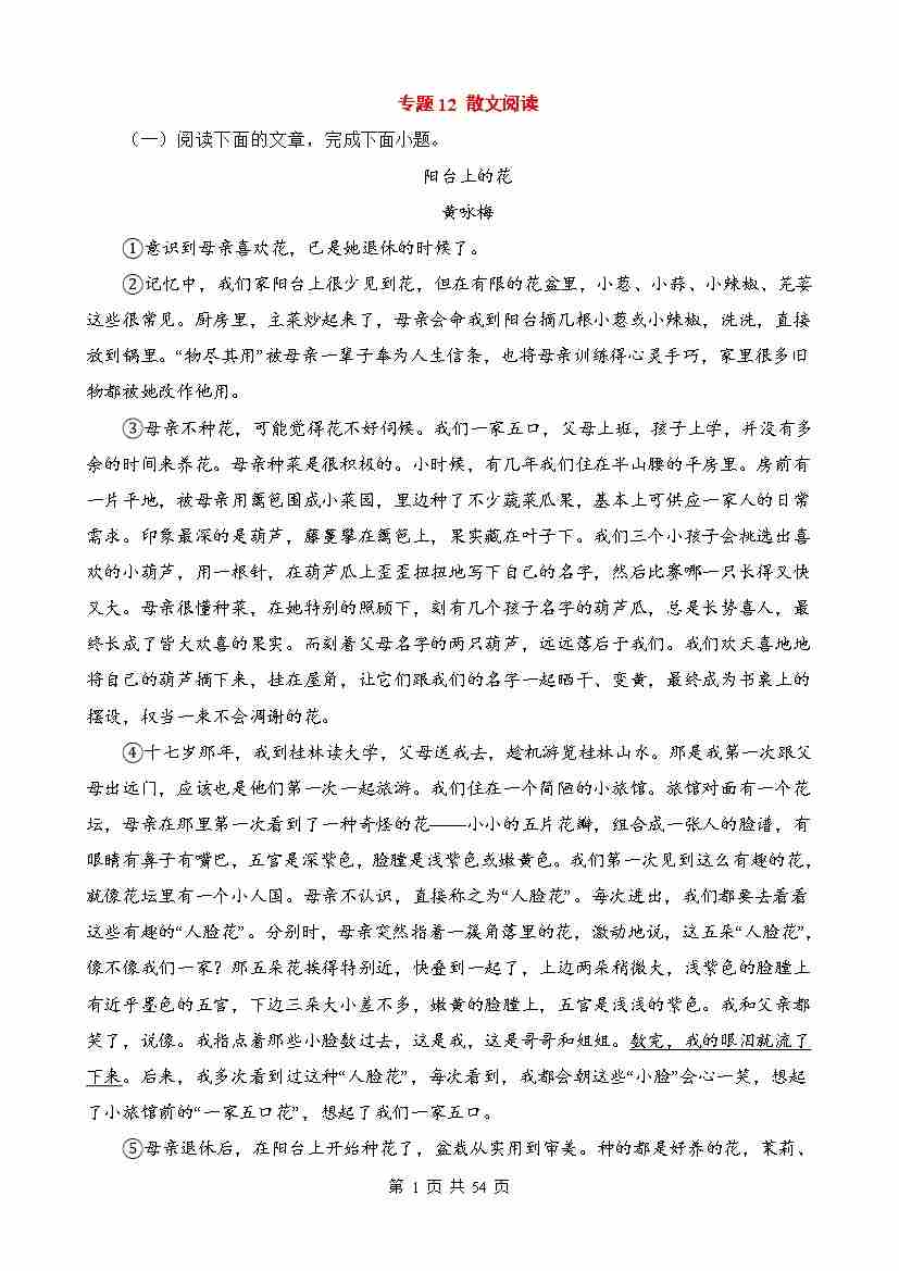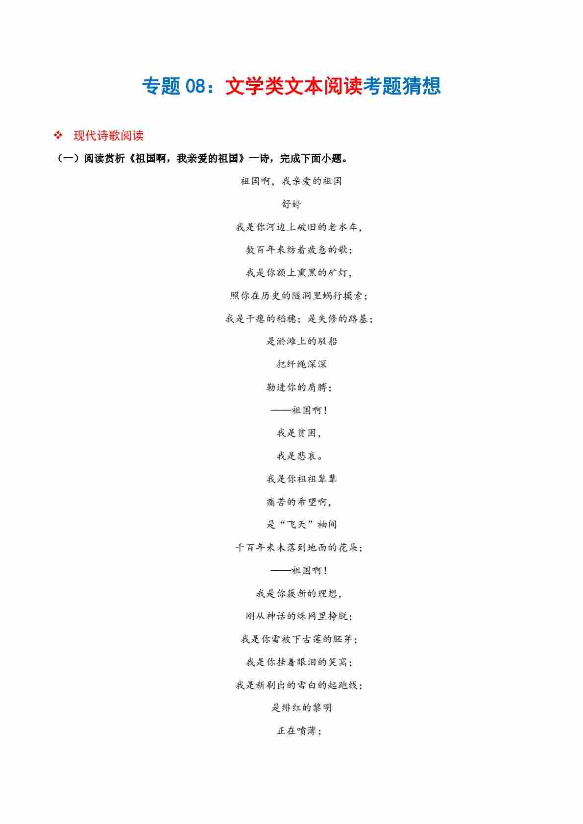 专题08 文学类文本阅读(考题猜想)(原卷版)