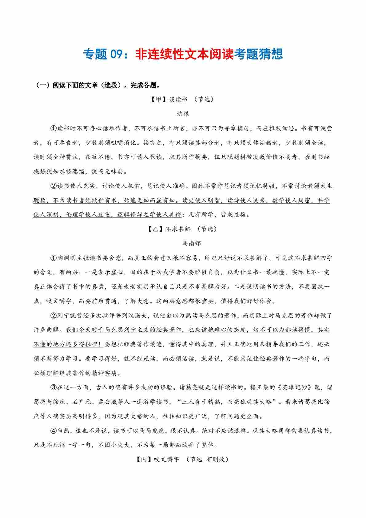 专题09 非连续性文本阅读(考题猜想)(原卷版)