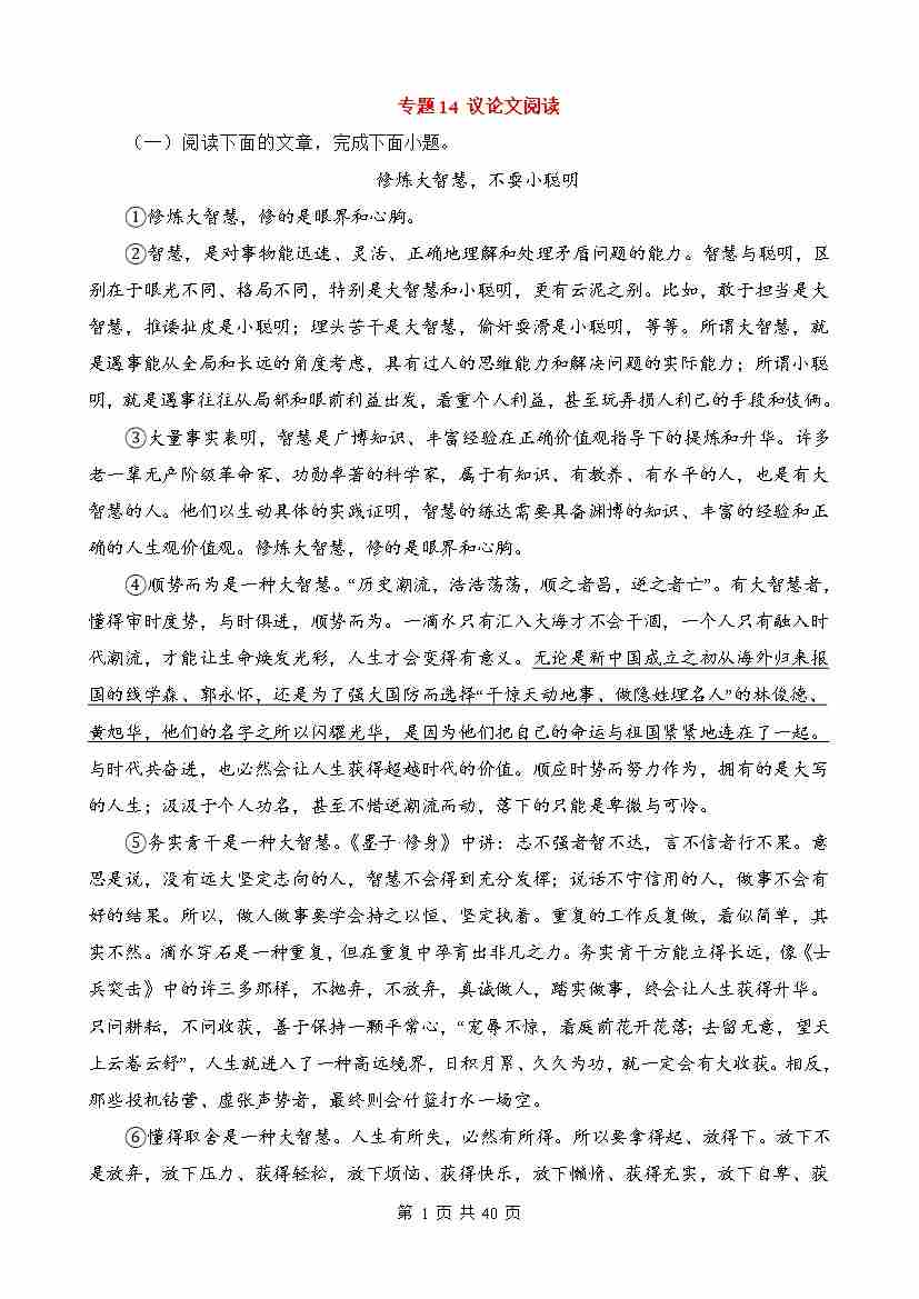 专题14:议论文阅读