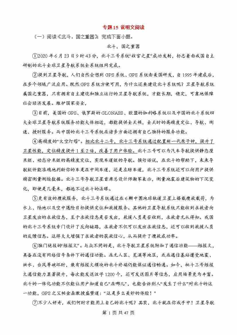 专题15:说明文阅读