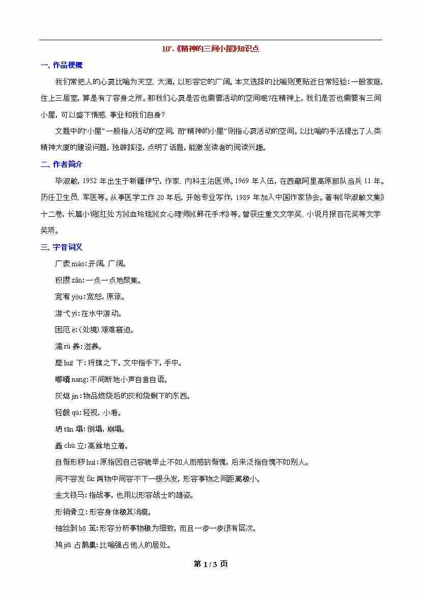 第10课《精神的三角小屋》知识点