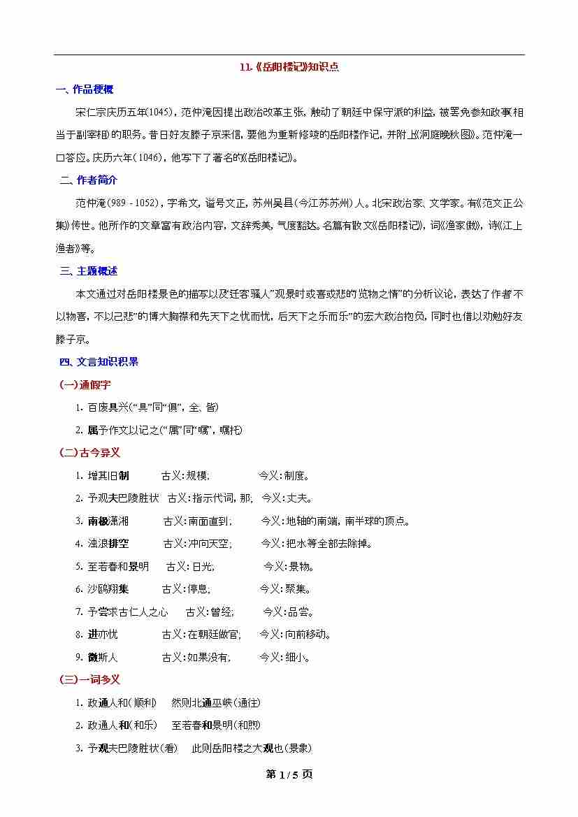 第11课《岳阳楼记》知识点