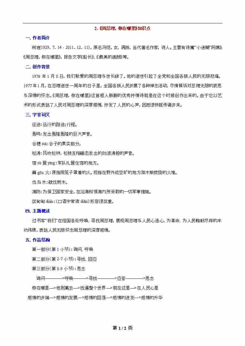第2课 《周总理,你在哪里》知识点