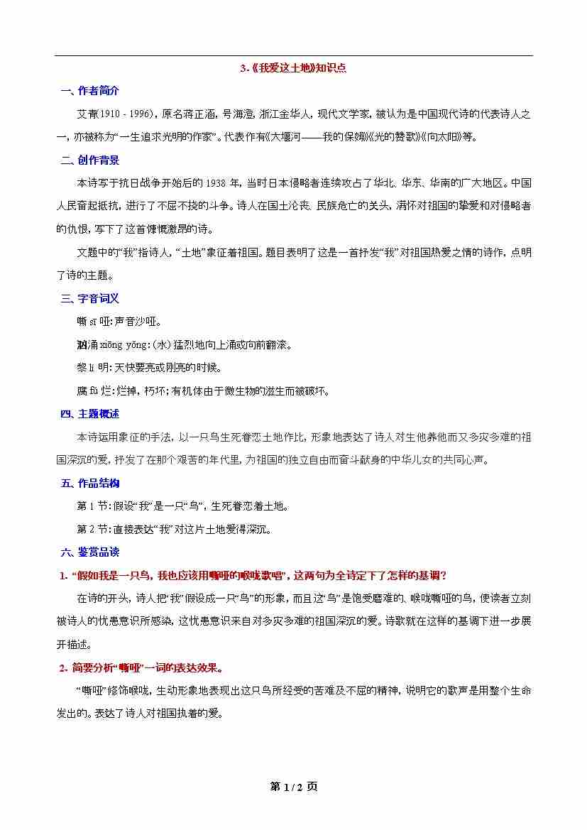 第3课 《我爱这土地》知识点