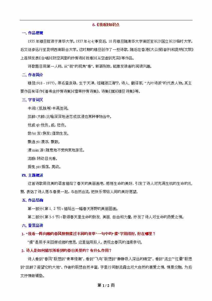 第6课 《我看》知识点