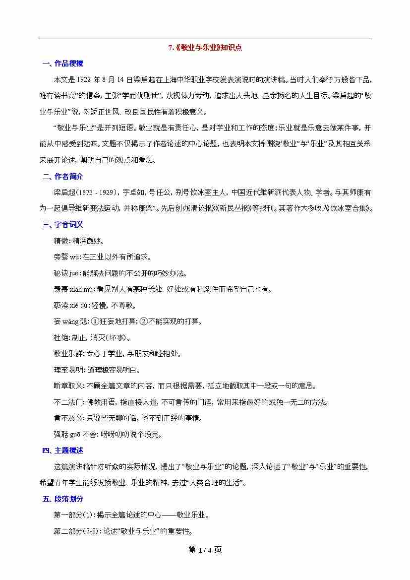 第7课 《敬业与乐业》知识点