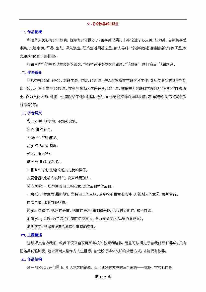 第9课《论教养》知识点