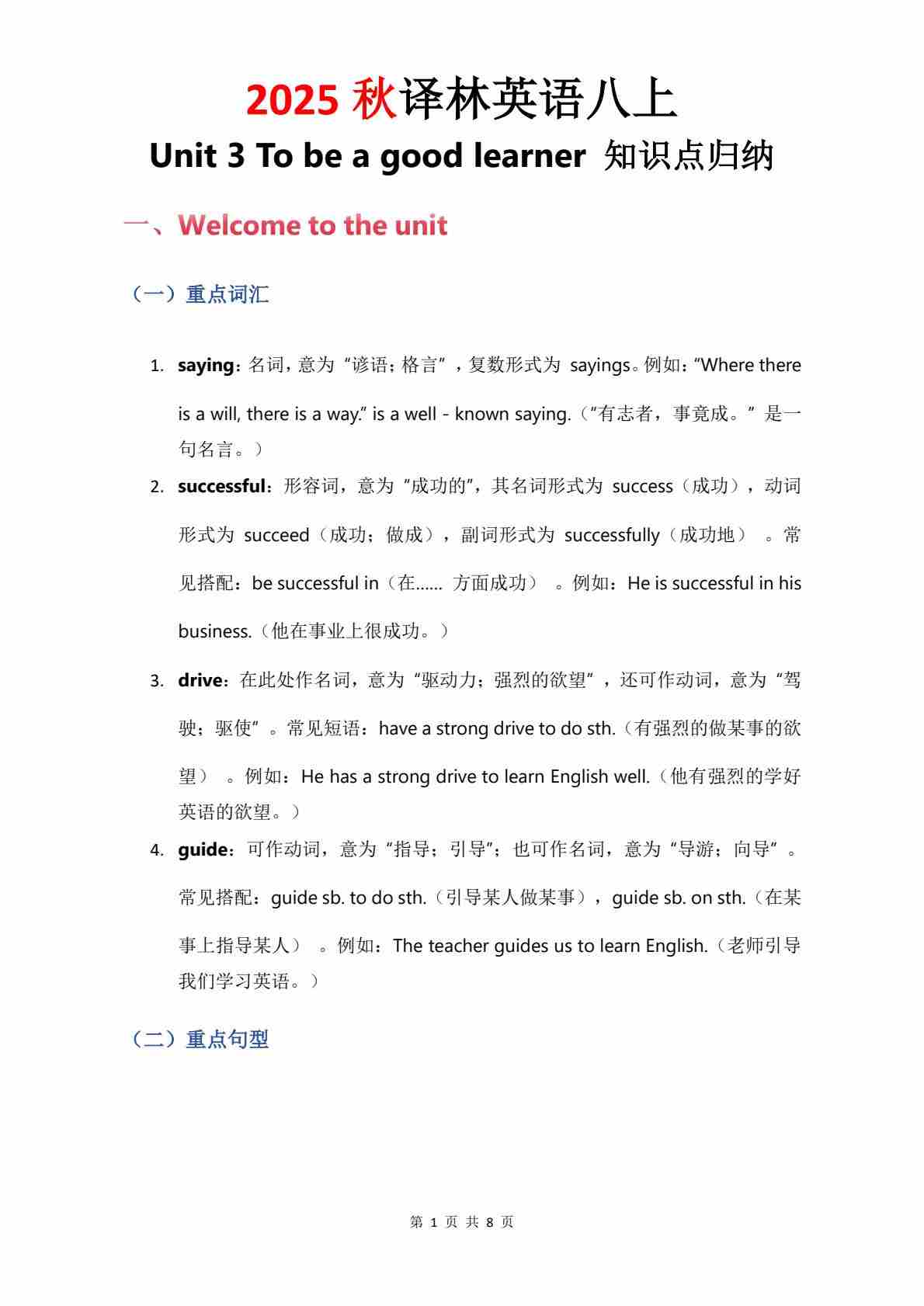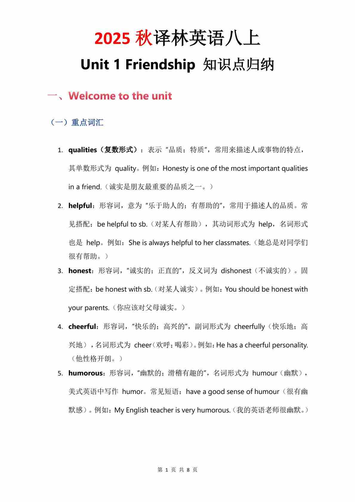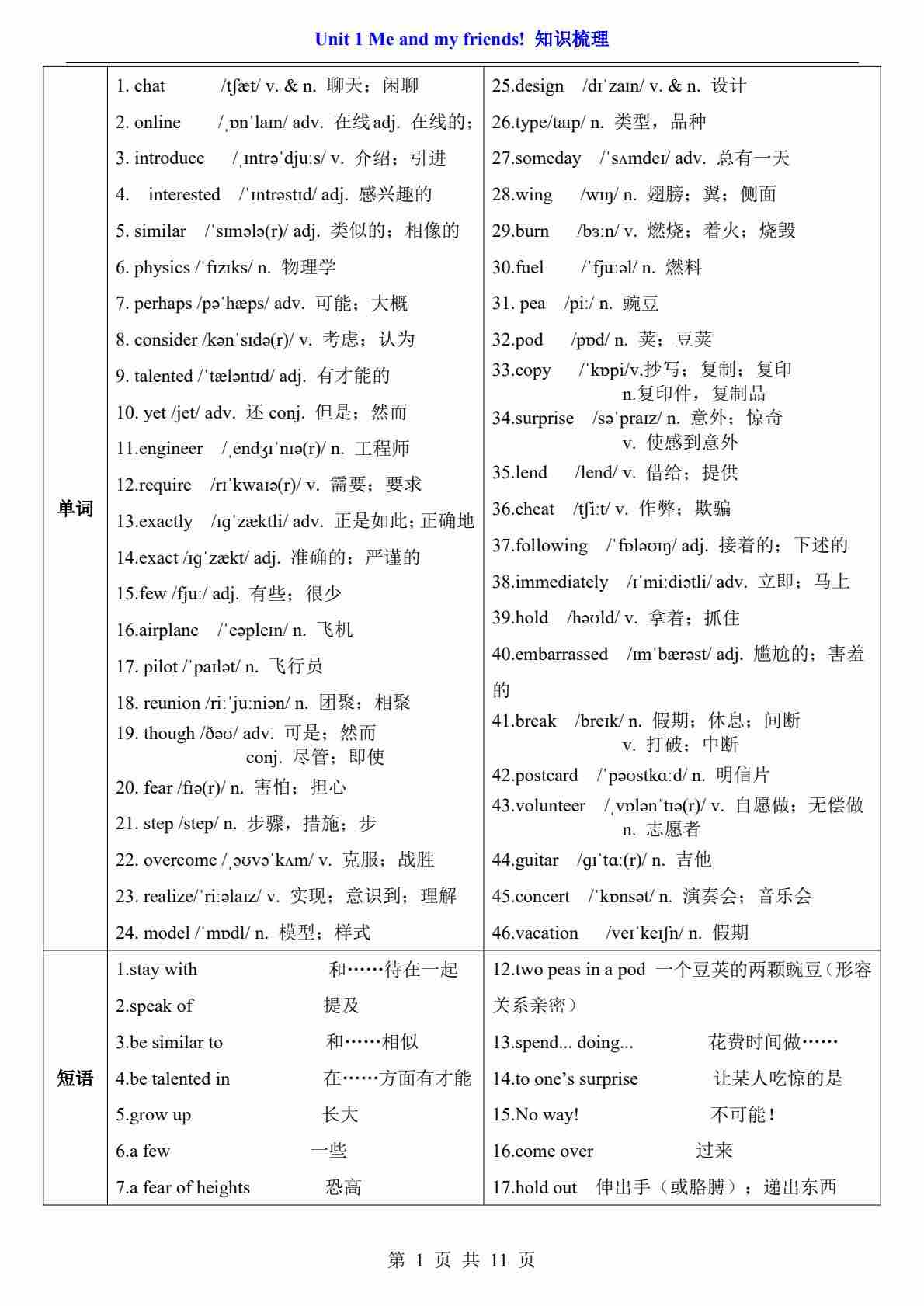 Unit 1(知识梳理)八上英语--冀教版-知识梳理