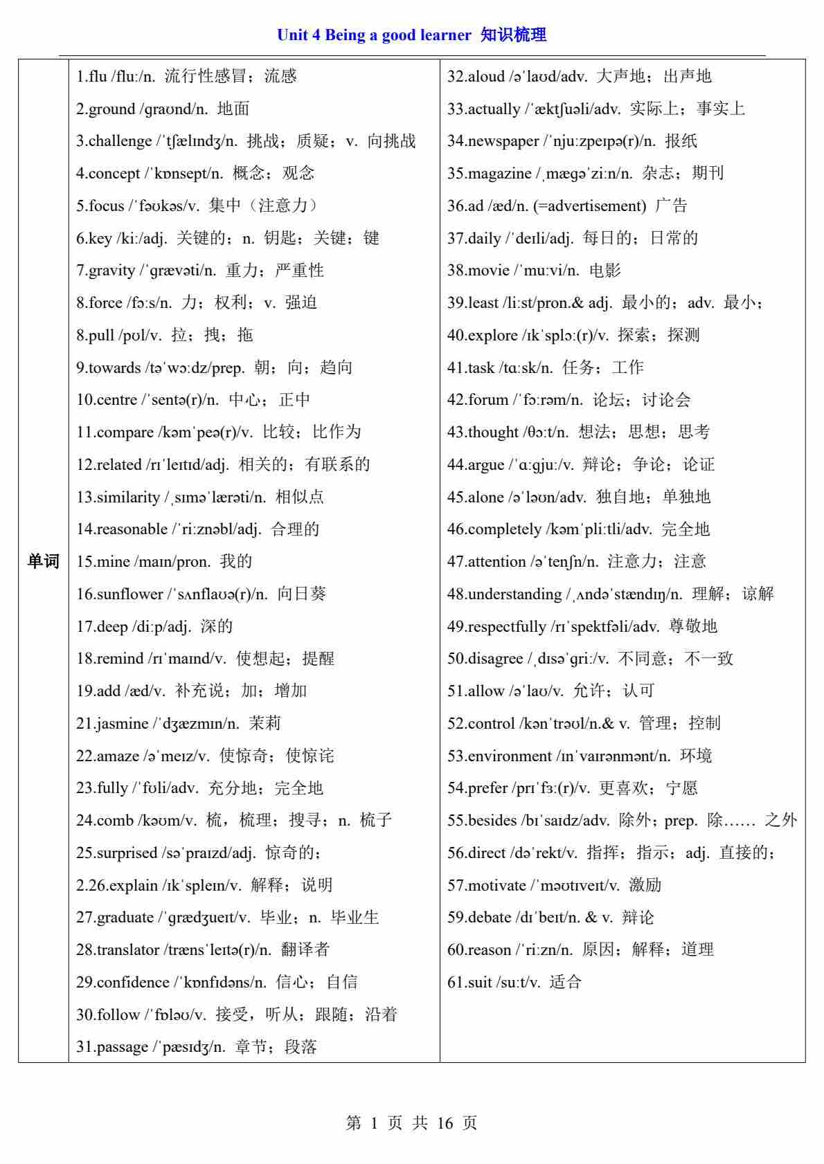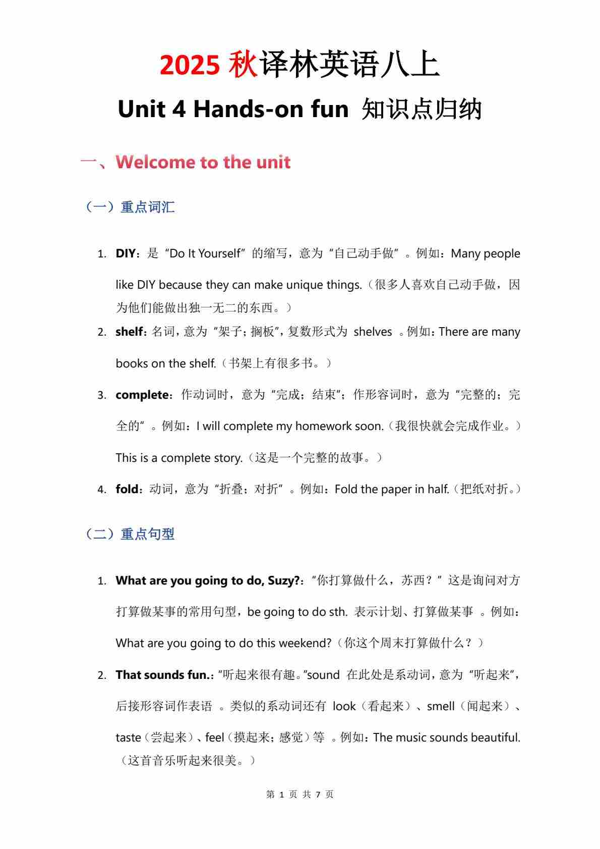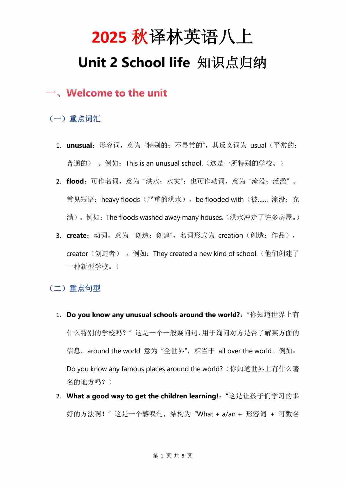 Unit 1(知识梳理)八上英语--冀教版-知识梳理