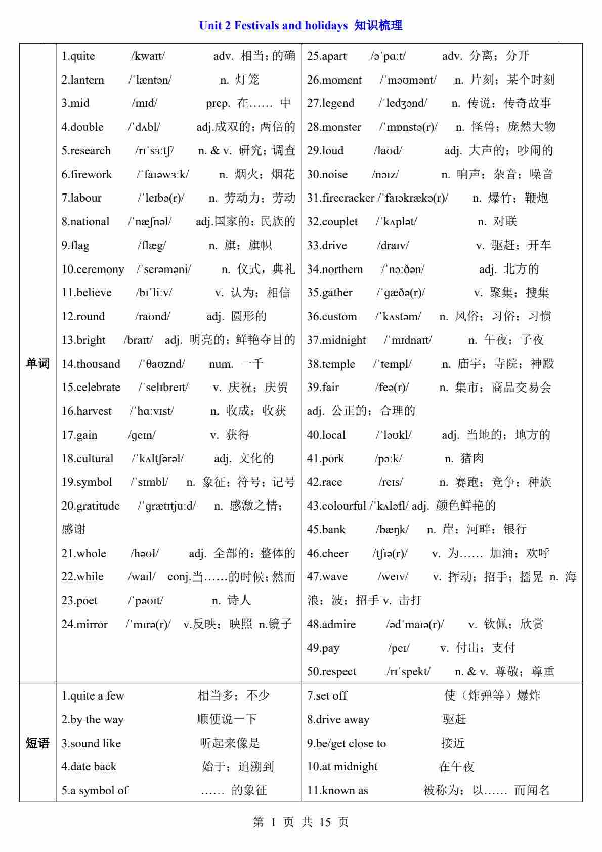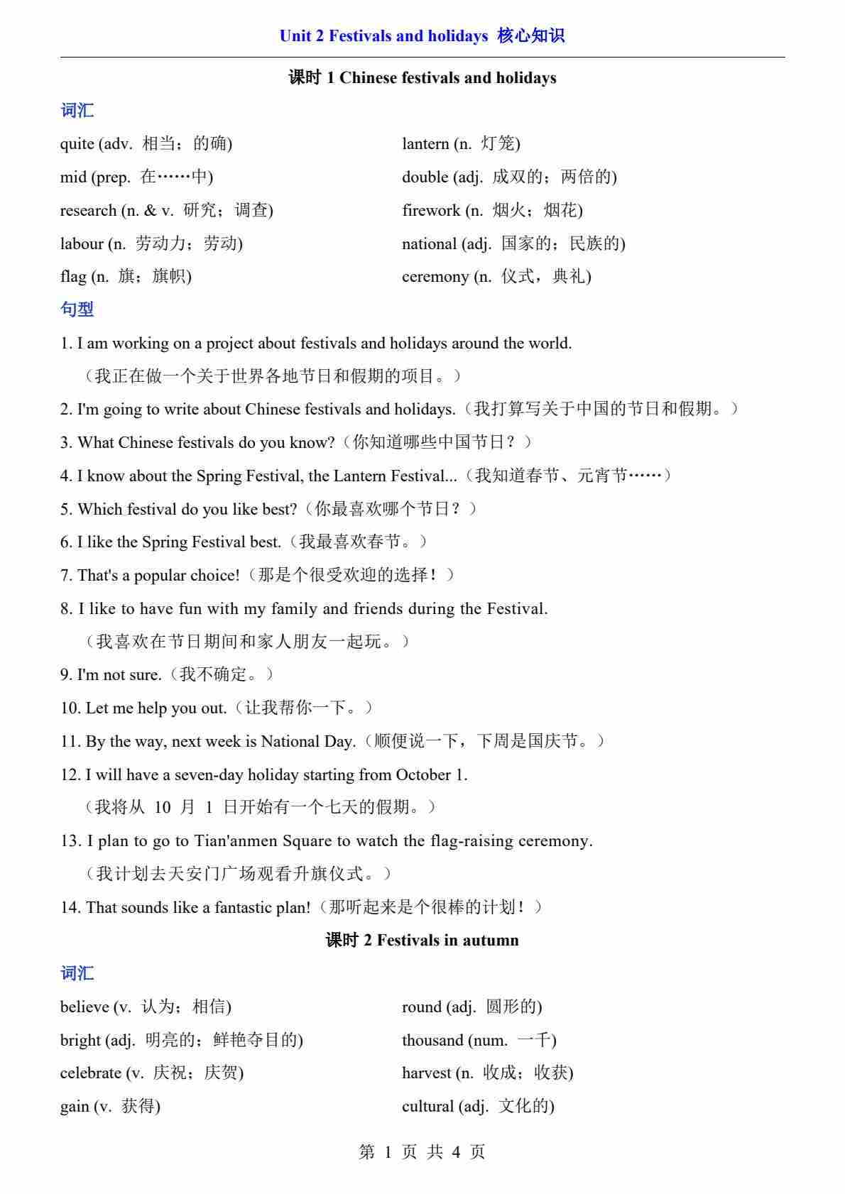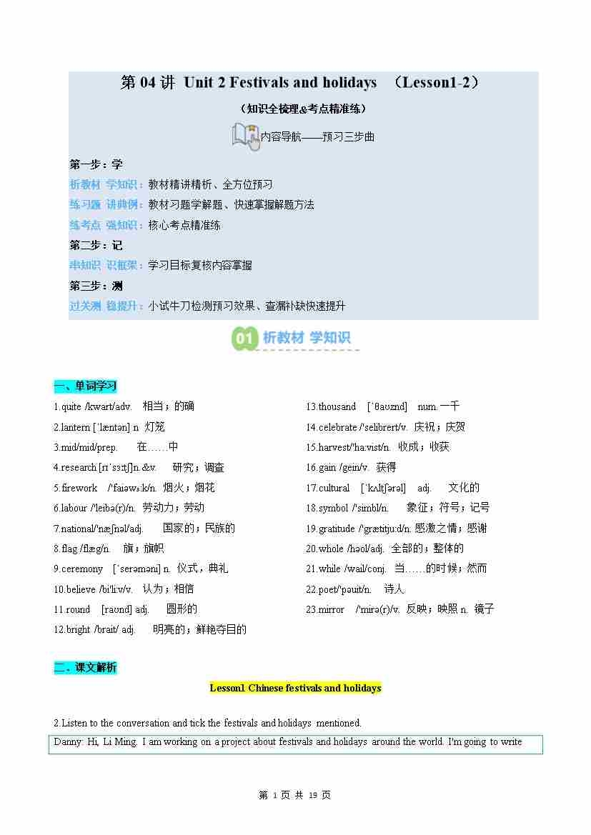 第04讲 Unit 2 Festivals and holidays(Lesson1-2)(知识全梳理--考点精准练)(原卷版)