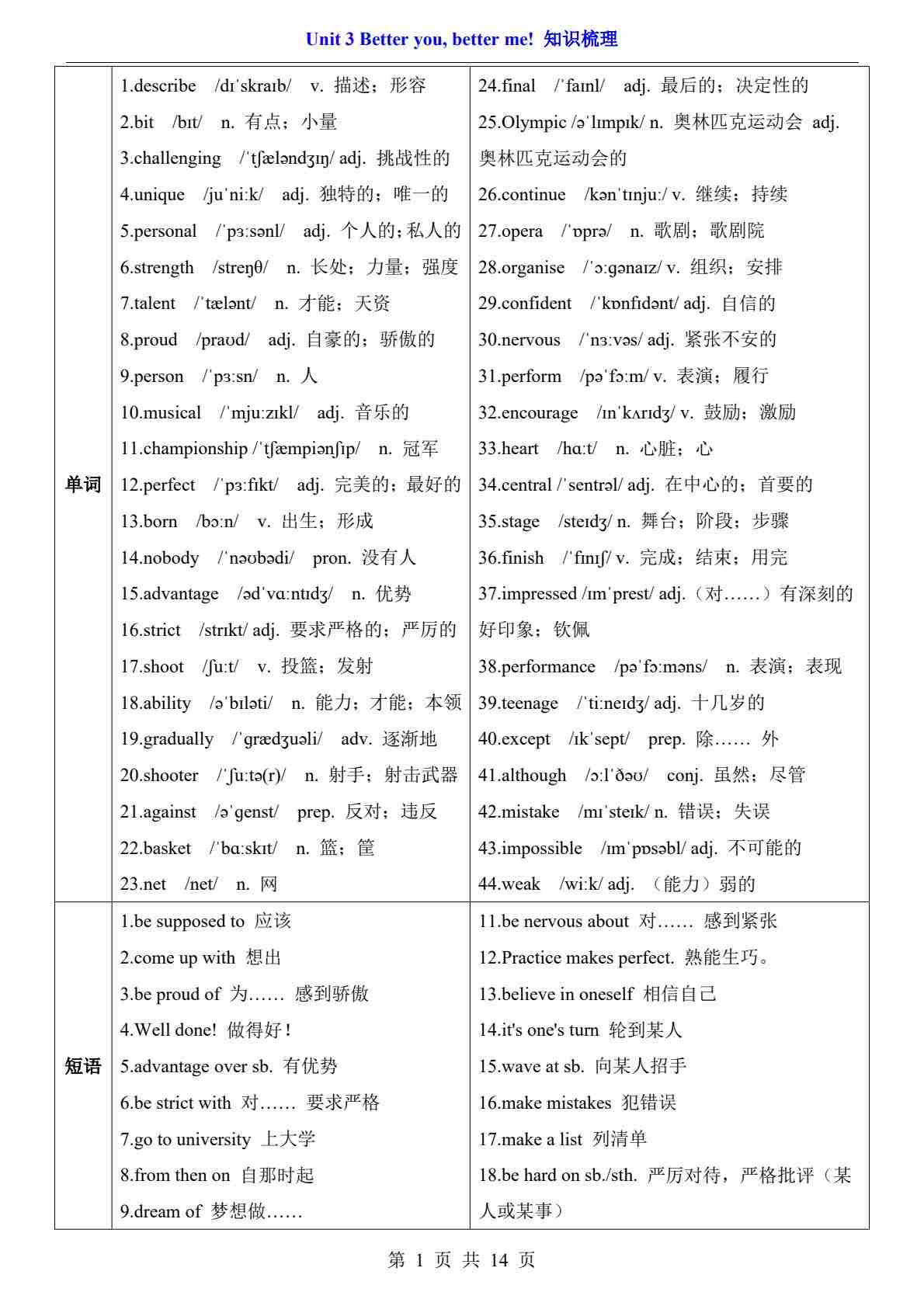 Unit 3(知识梳理)八上英语--冀教版-知识梳理