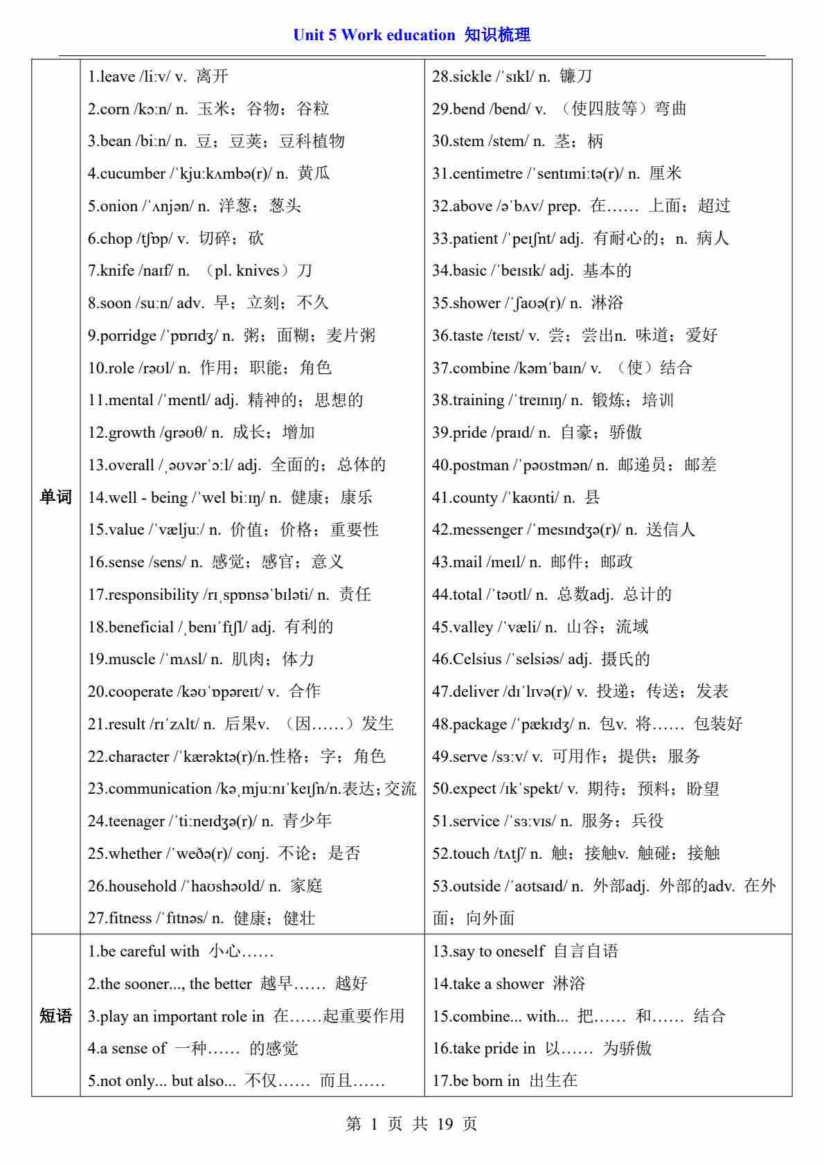 Unit 5(知识梳理)八上英语--冀教版-知识梳理