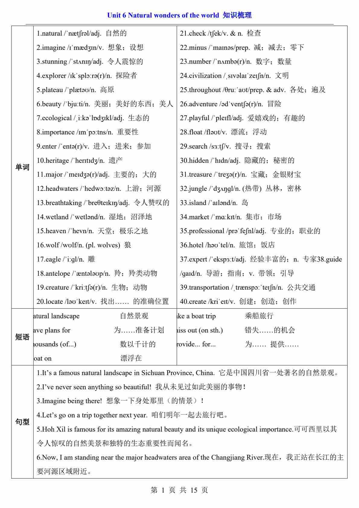 Unit 6(知识梳理)八上英语--冀教版-知识梳理