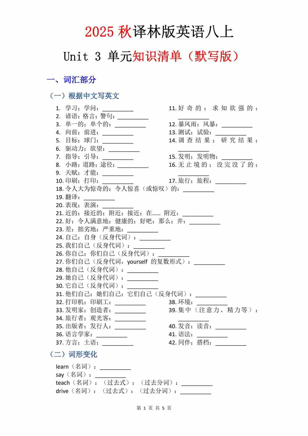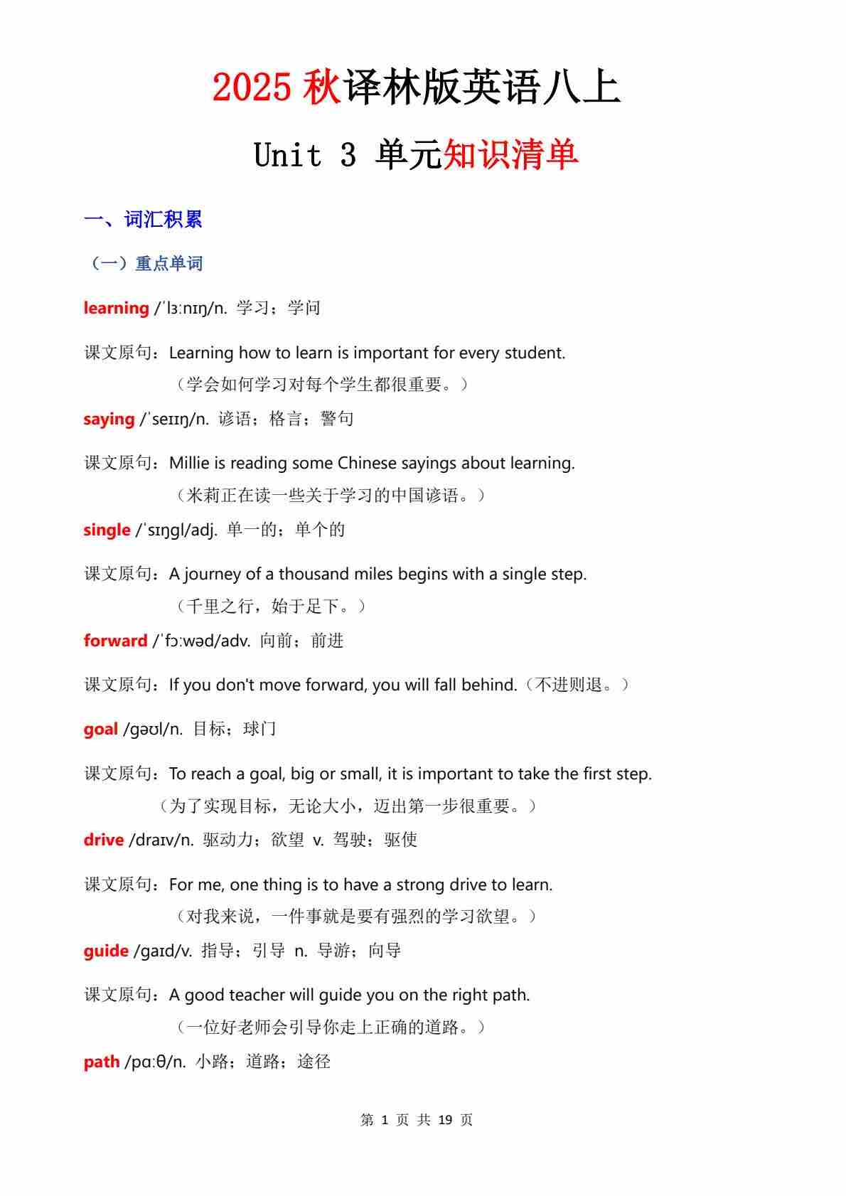 Unit 3 To be a good learner知识点总结(单词 短语 句子 语法)—2025秋新译林版英语八年级上册