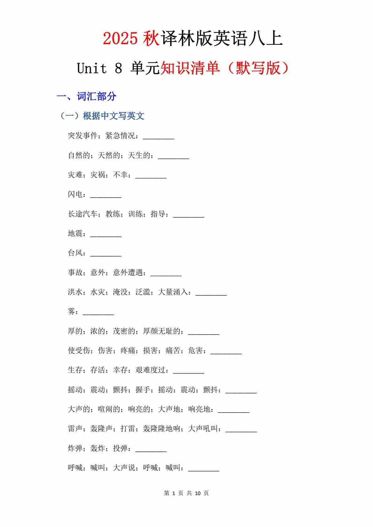 Unit 8 Safe and sound 知识点总结(单词 短语 句子 语法)—2025秋新译林版英语八年级上册