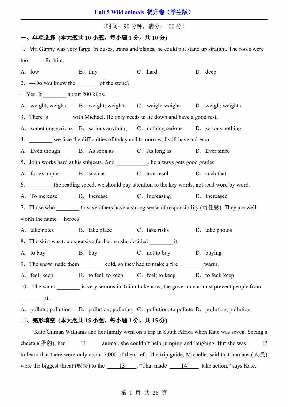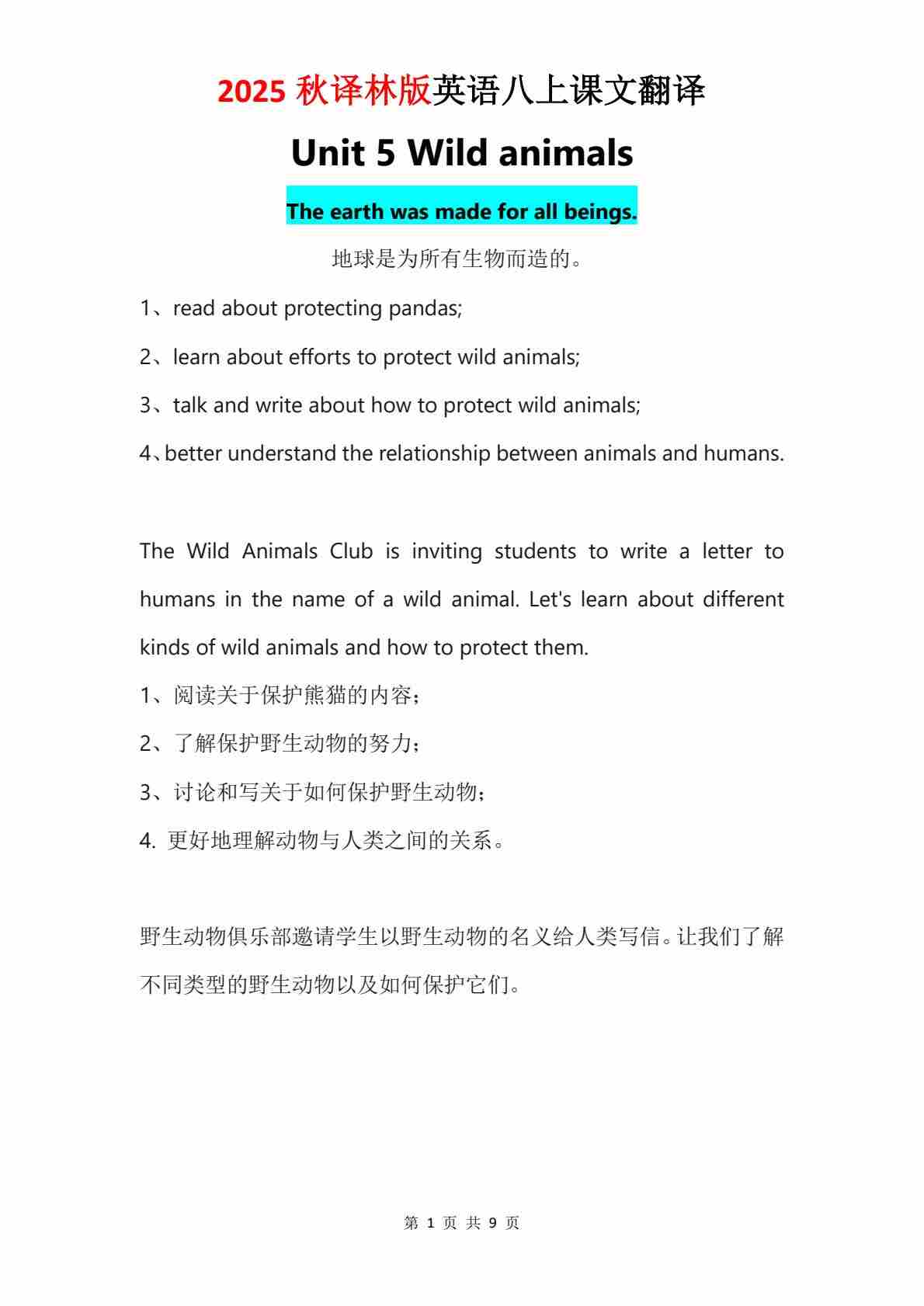 Unit 5 Wild animals八上英语--译林版--课堂笔记