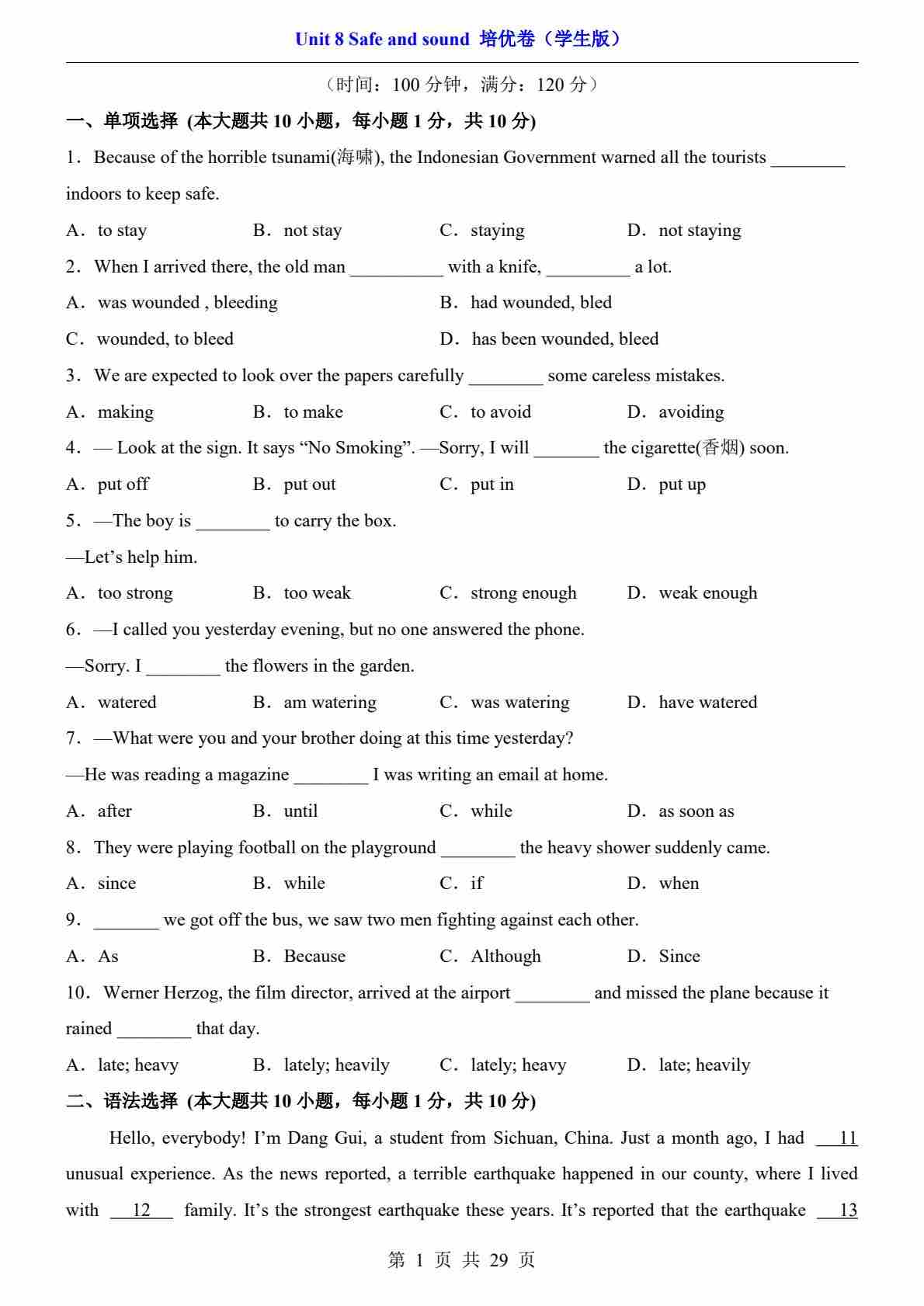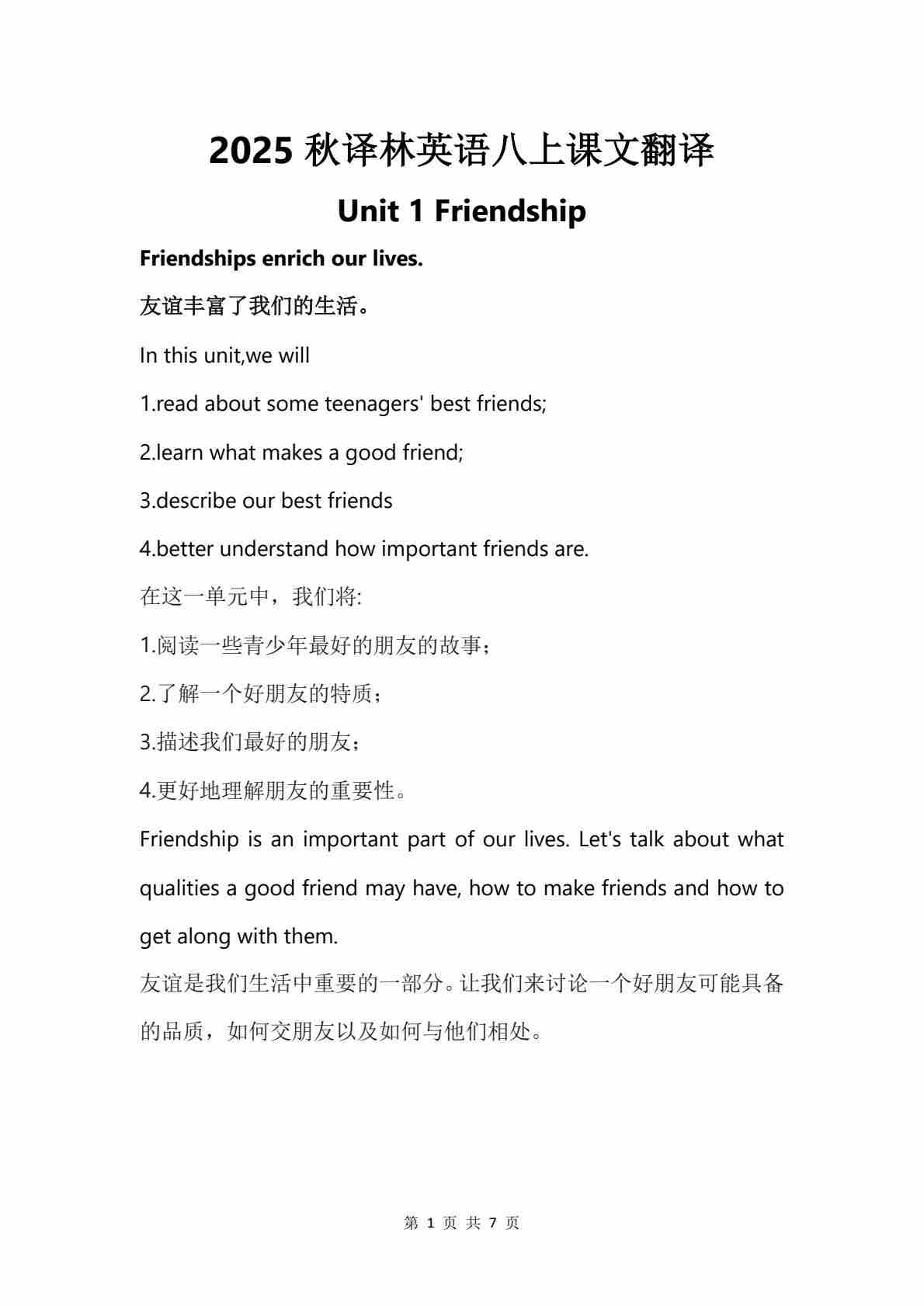 课文翻译 Unit 1八上英语--译林版--课文翻译