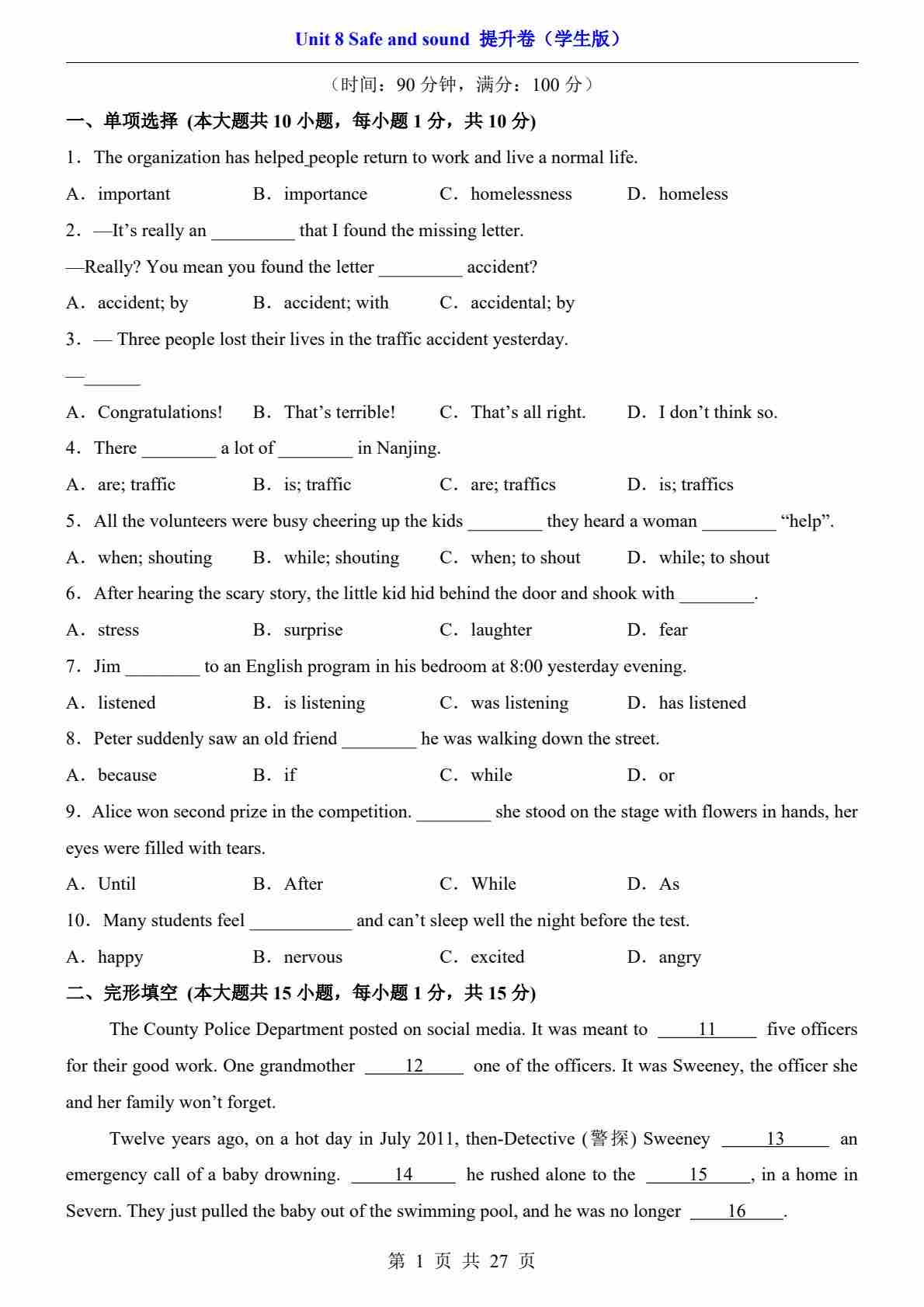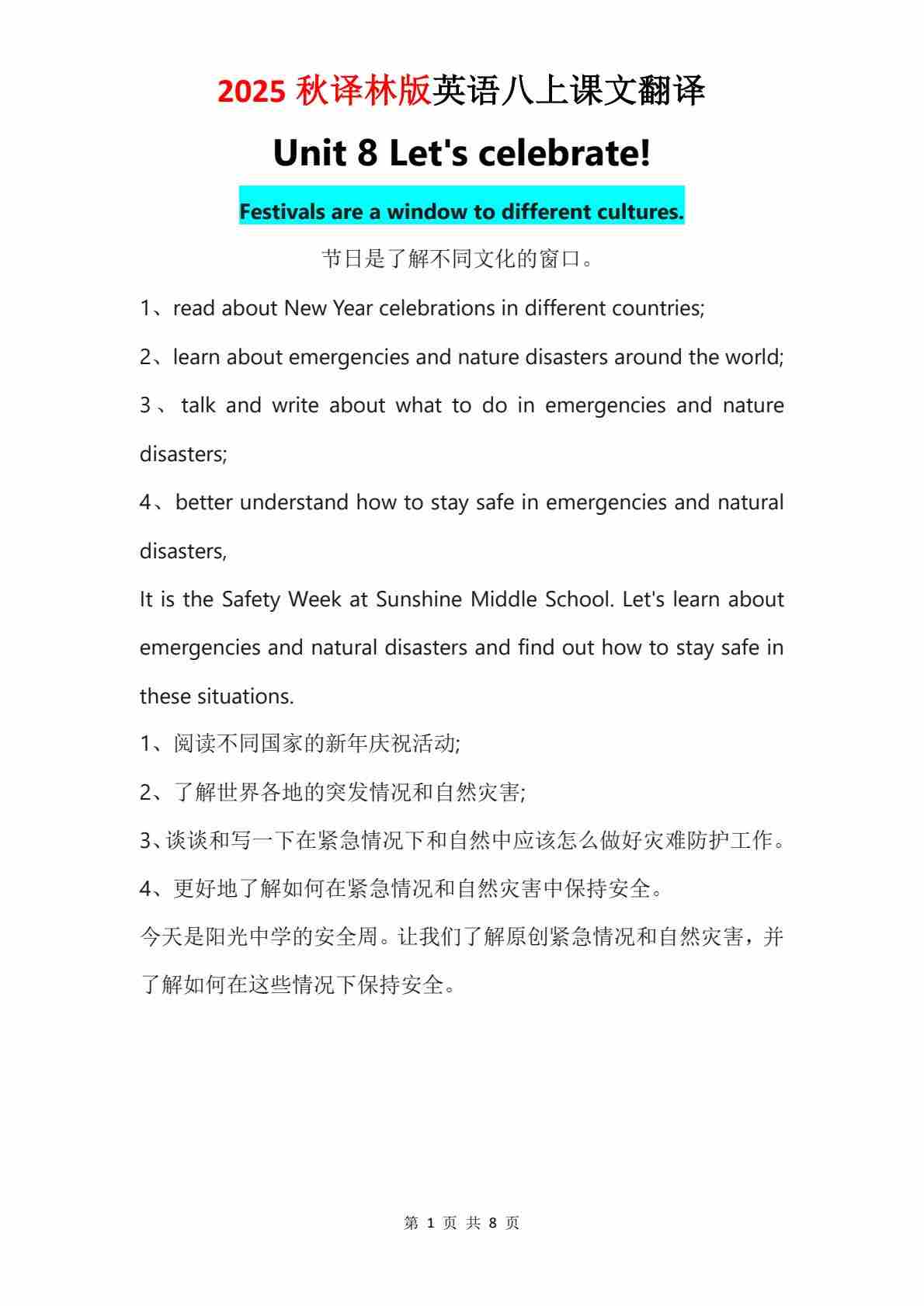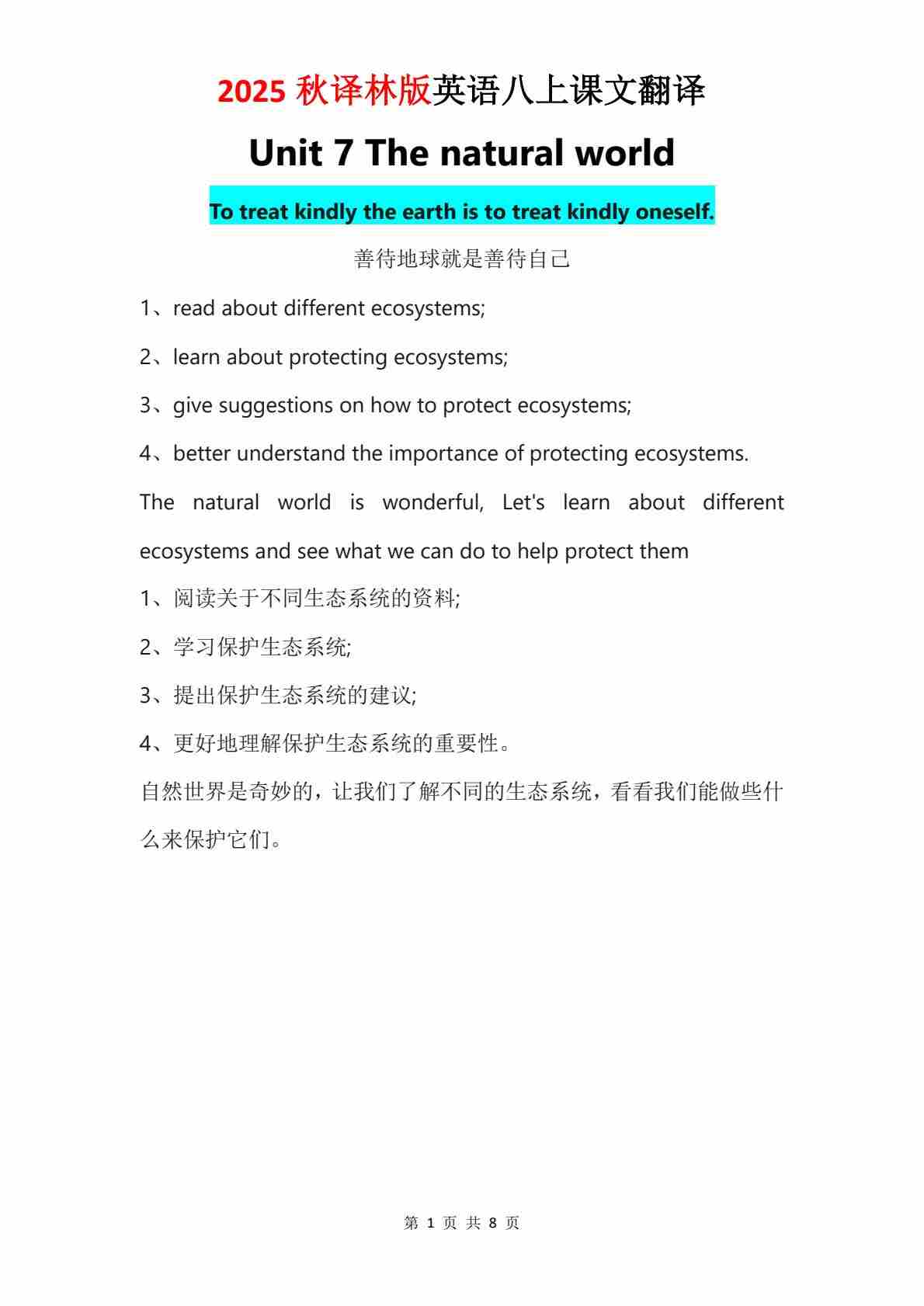 课文翻译 Unit 8八上英语--译林版--课文翻译