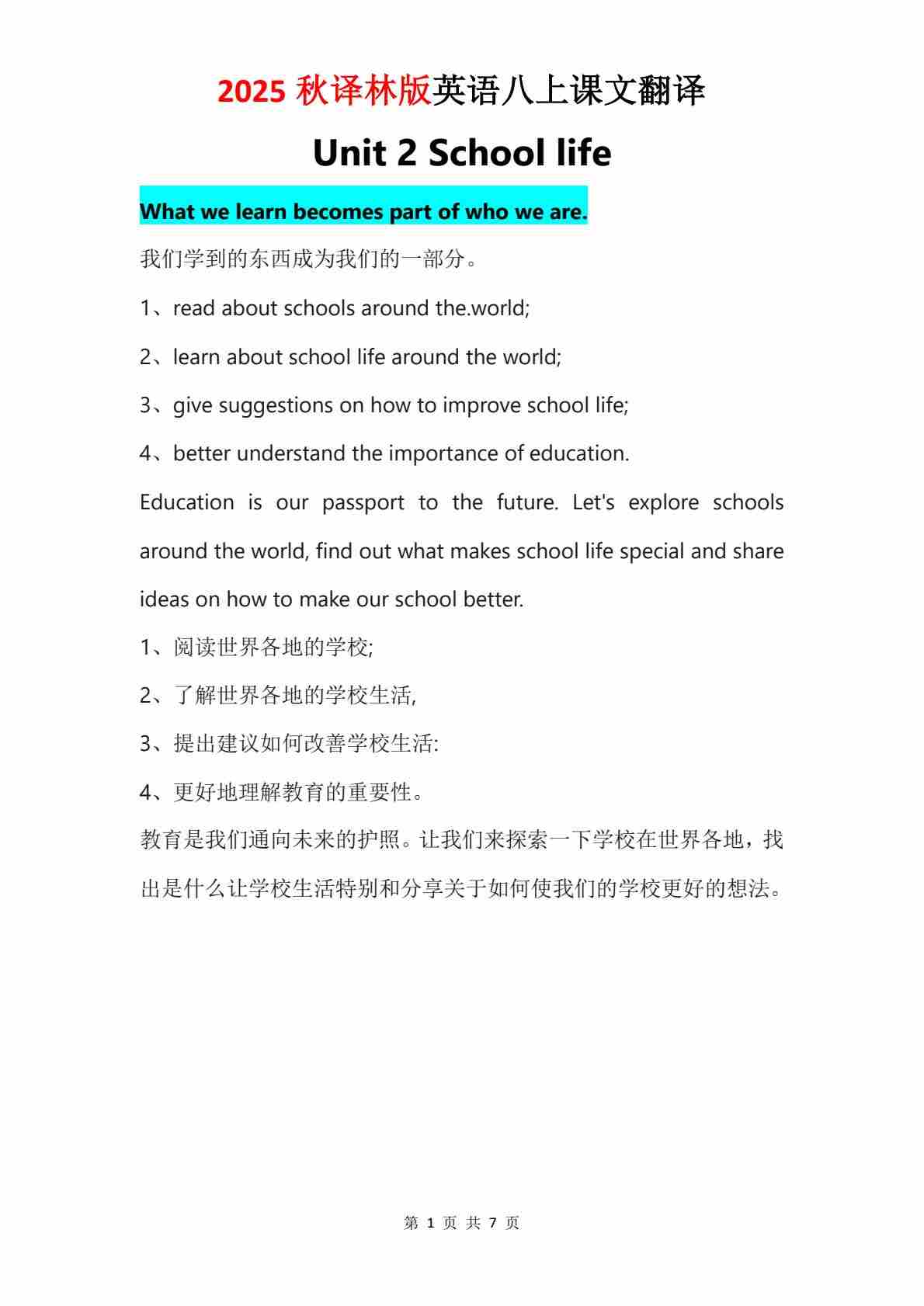 课文翻译 Unit 2八上英语--译林版--课文翻译