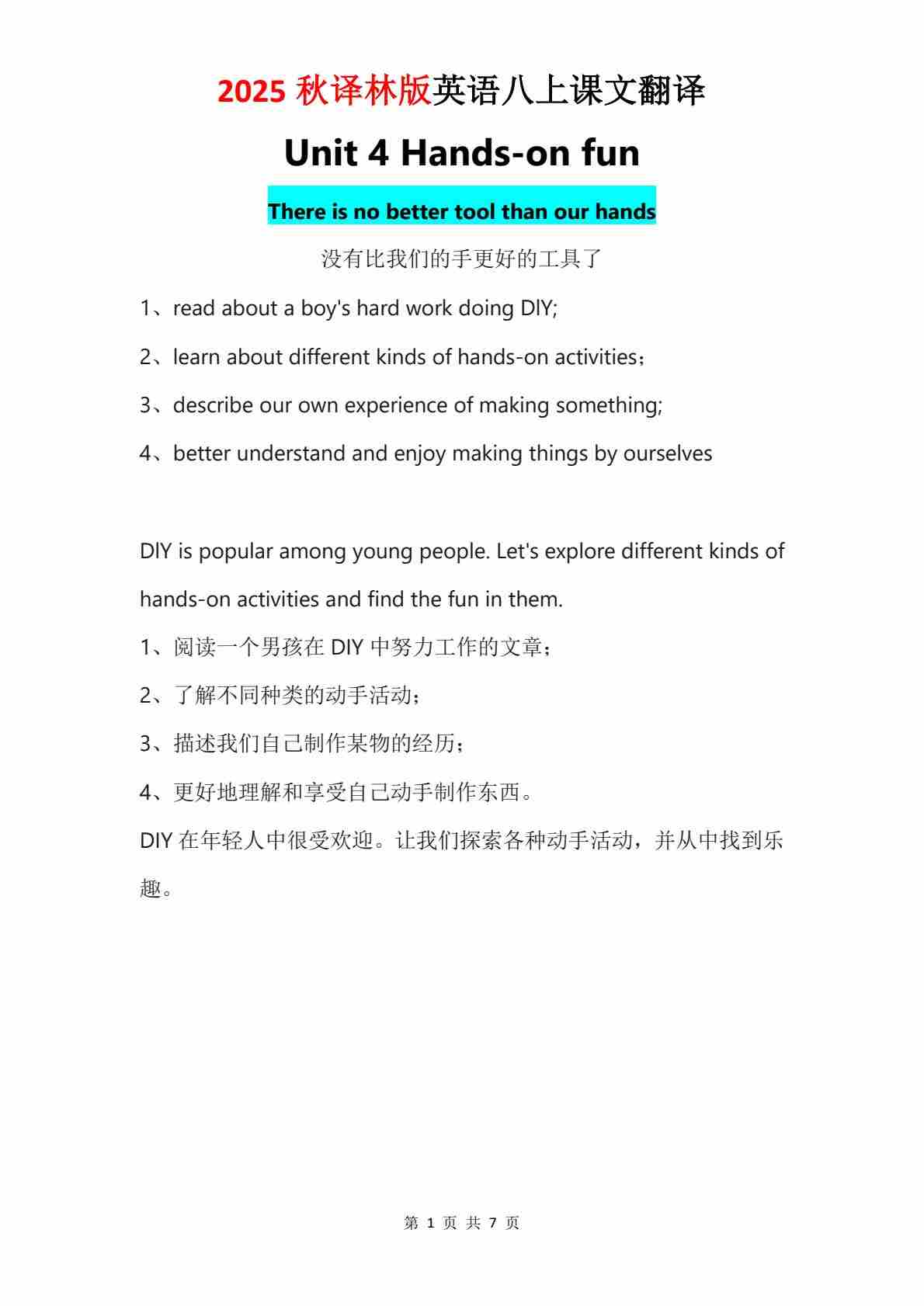 Unit 4 Hands-on fun-八上英语--译林版--课堂笔记
