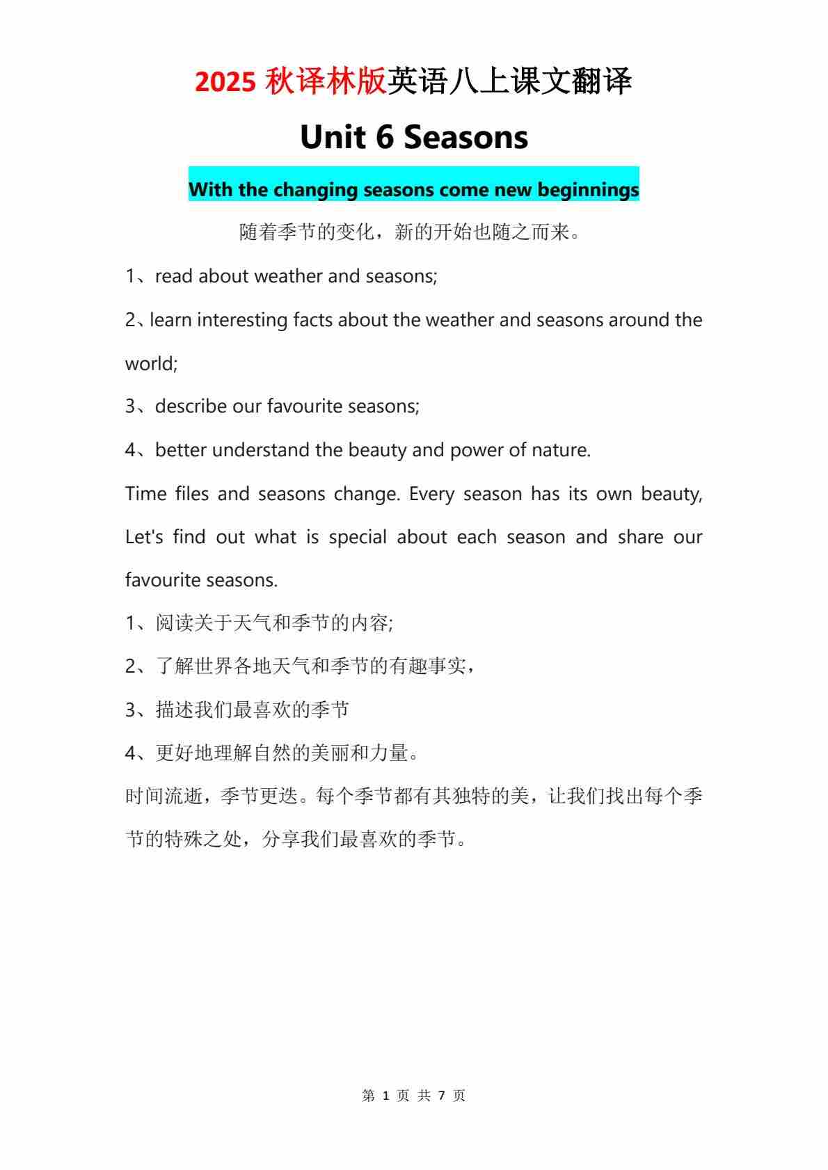 课文翻译 Unit 7八上英语--译林版--课文翻译