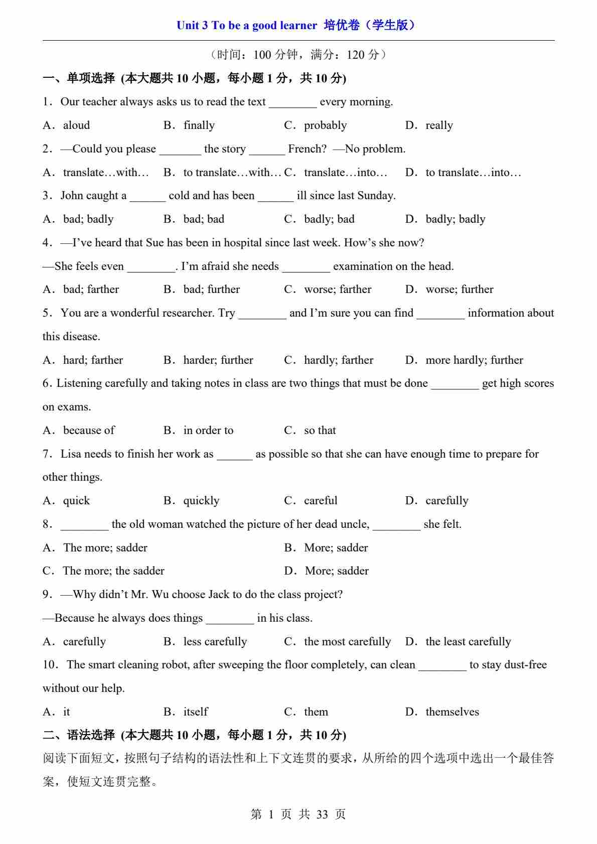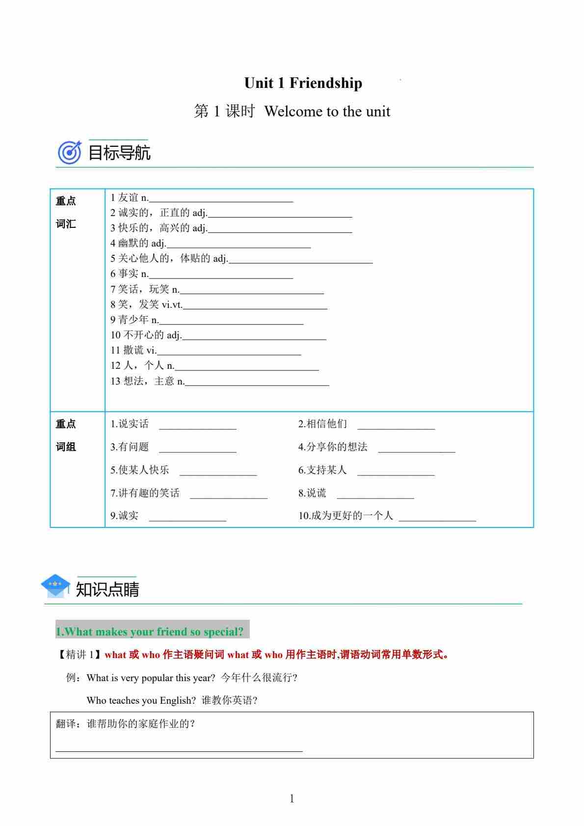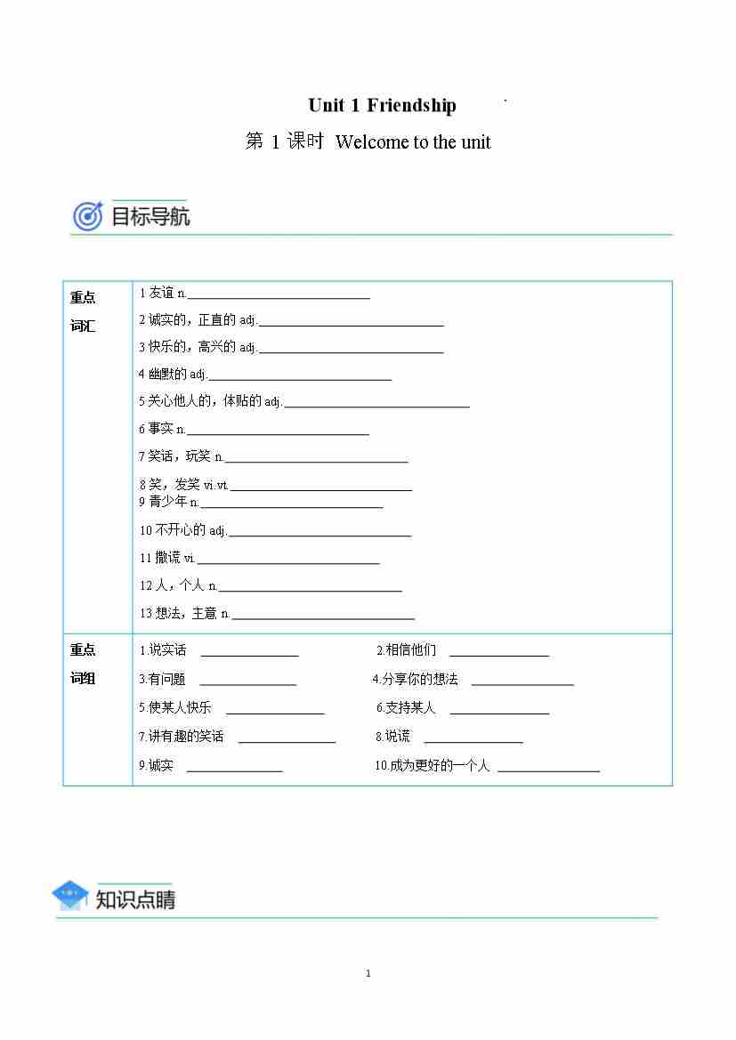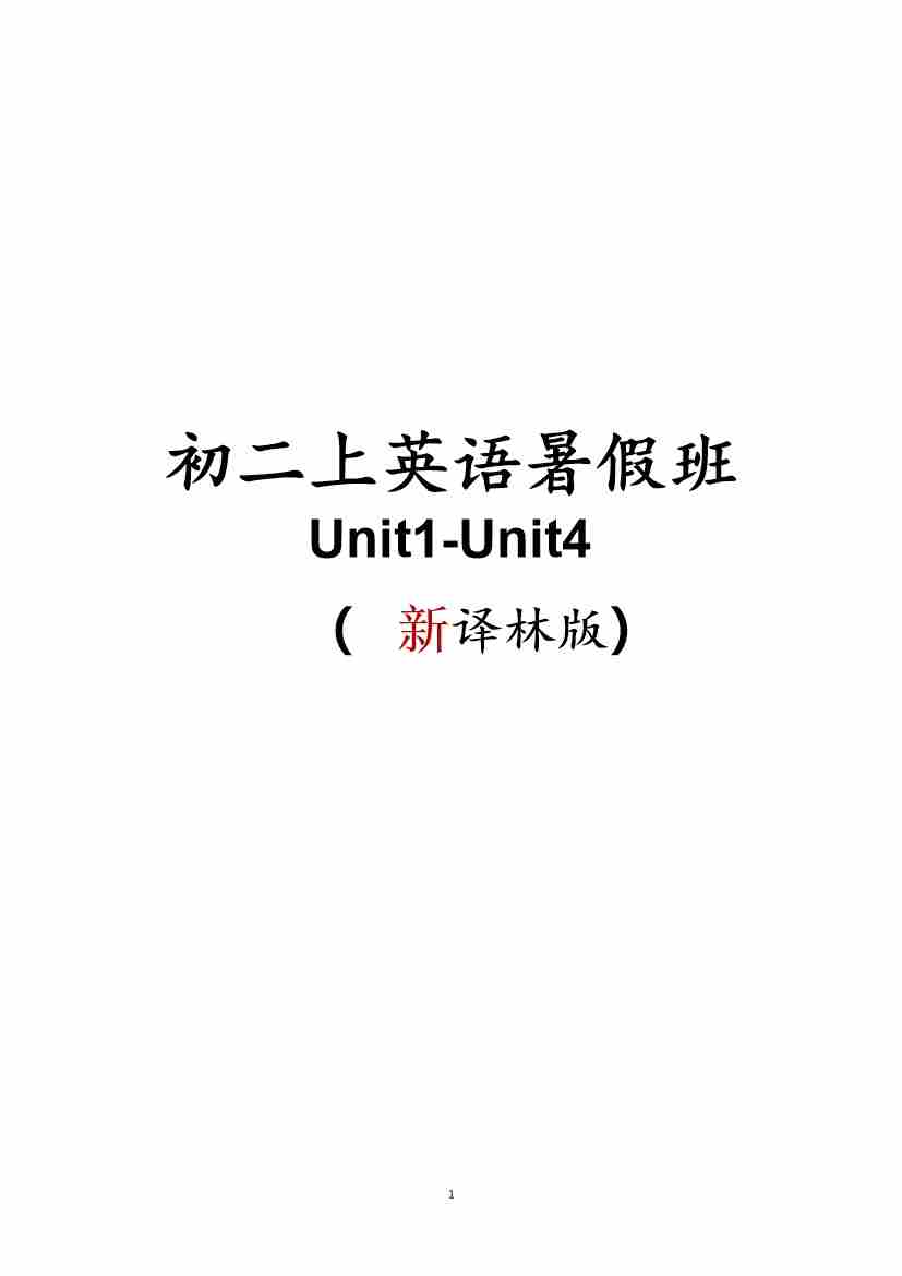 八上译林版暑假讲义u 1-4 答案(PDF)