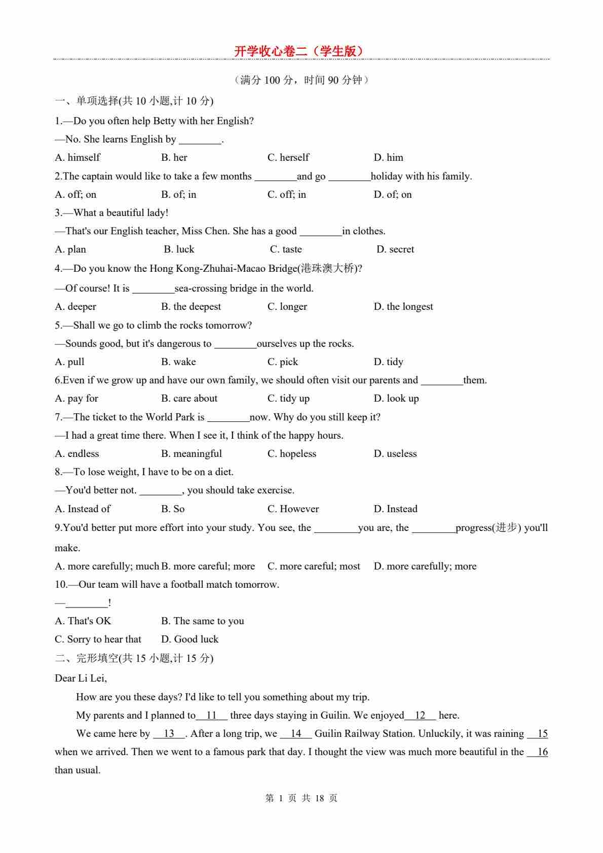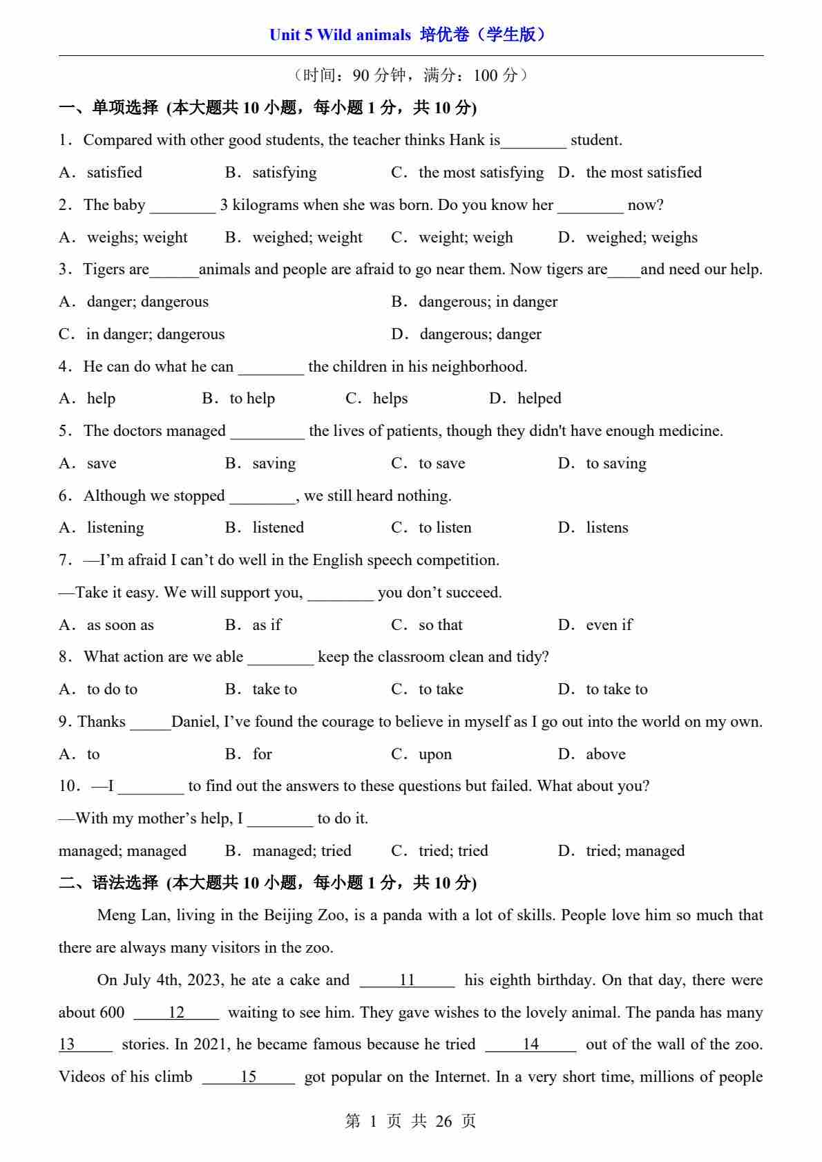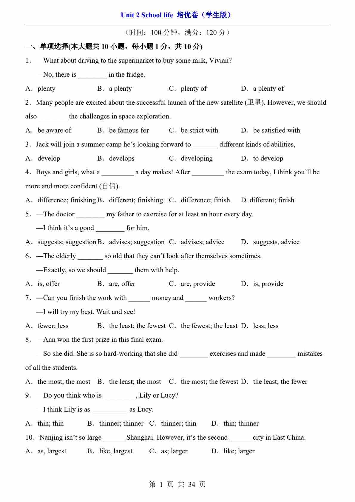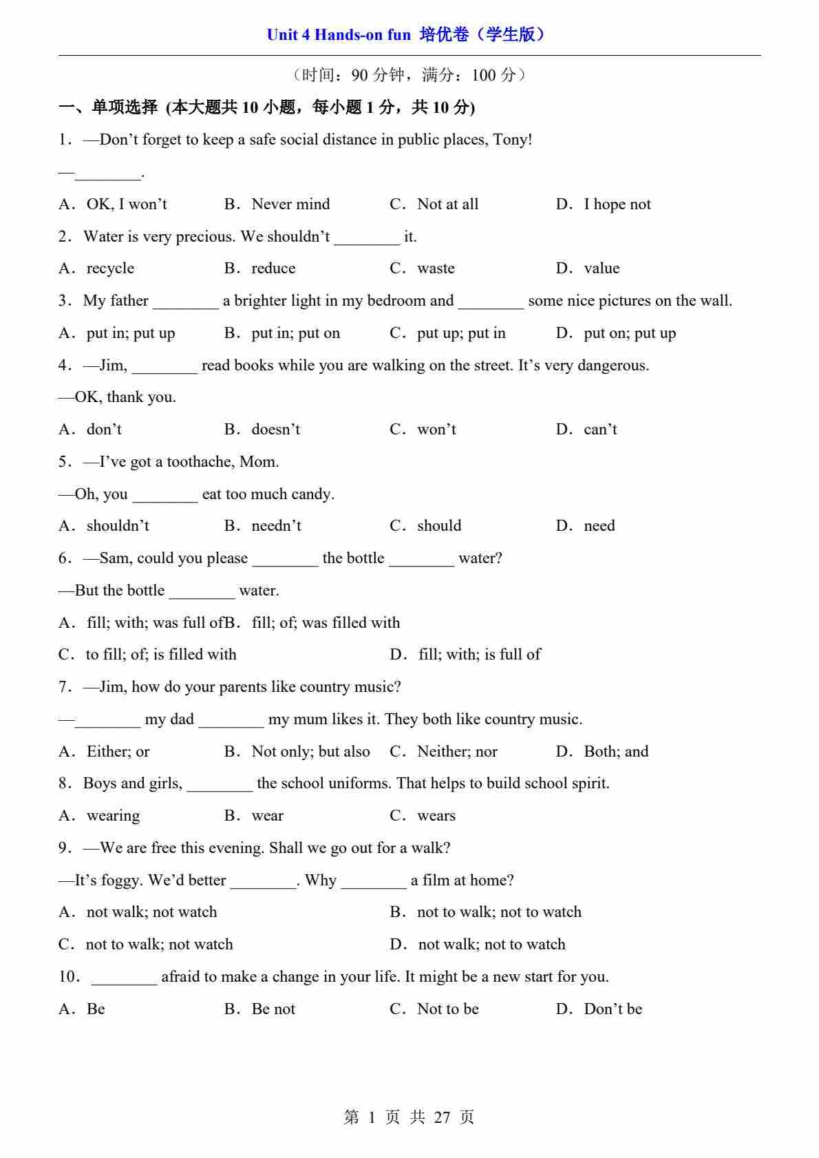 八上译林版暑假讲义u 1-4 答案(PDF)