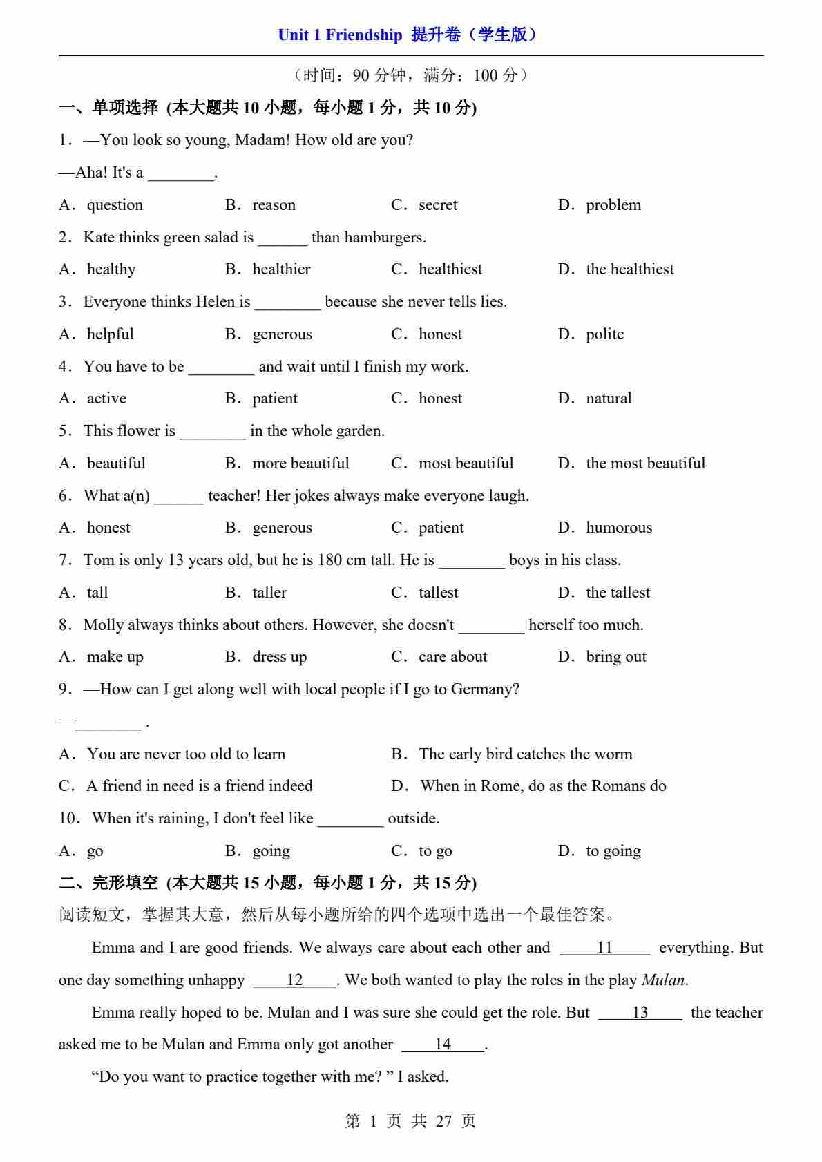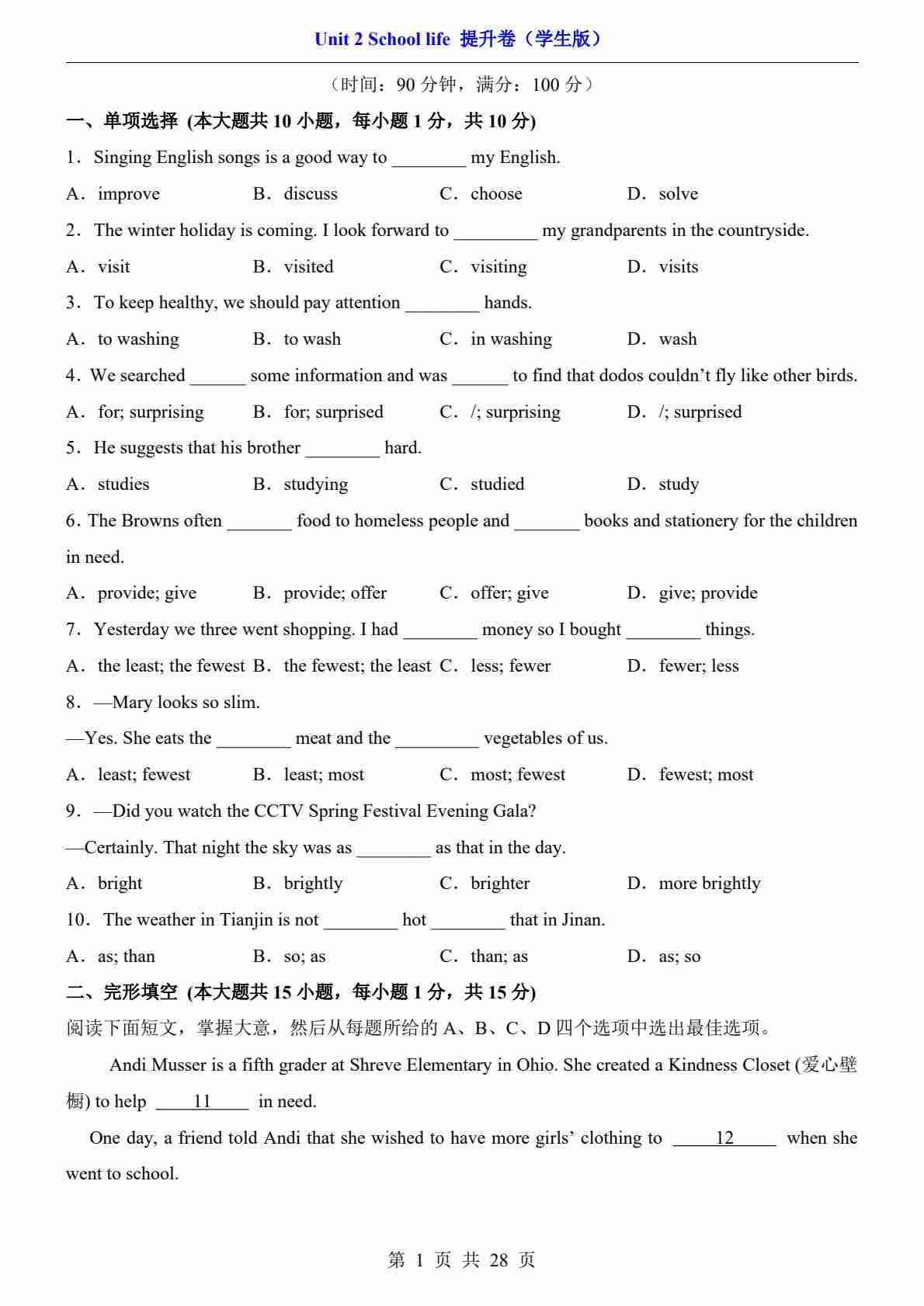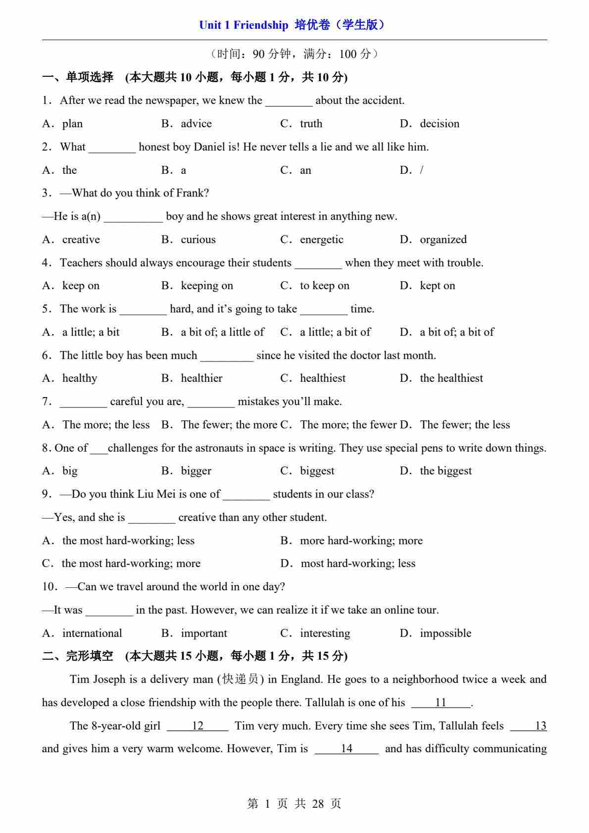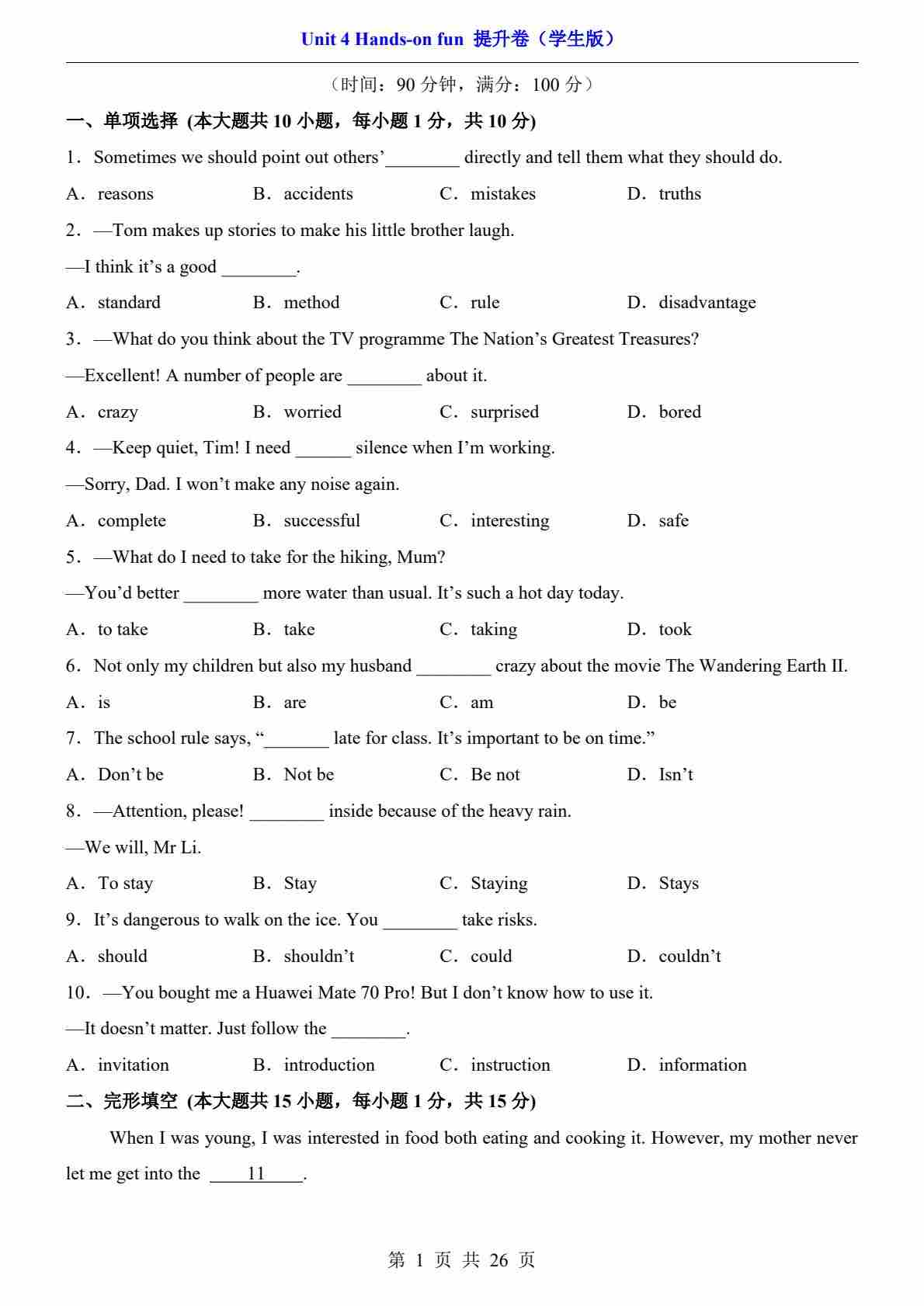 八上译林版暑假讲义u 1-4 答案(PDF)