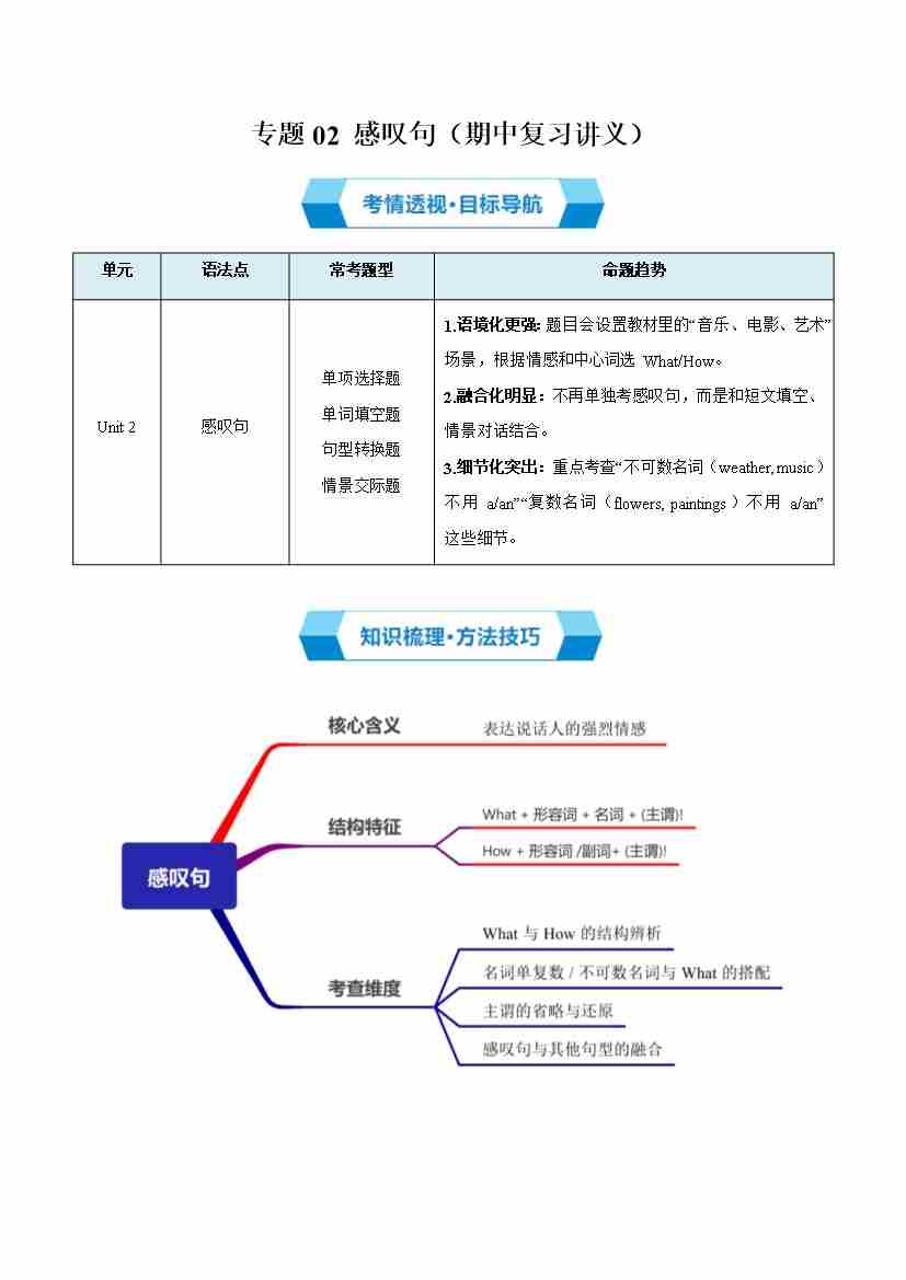 专题02 感叹句(期中复习讲义)(解析版)