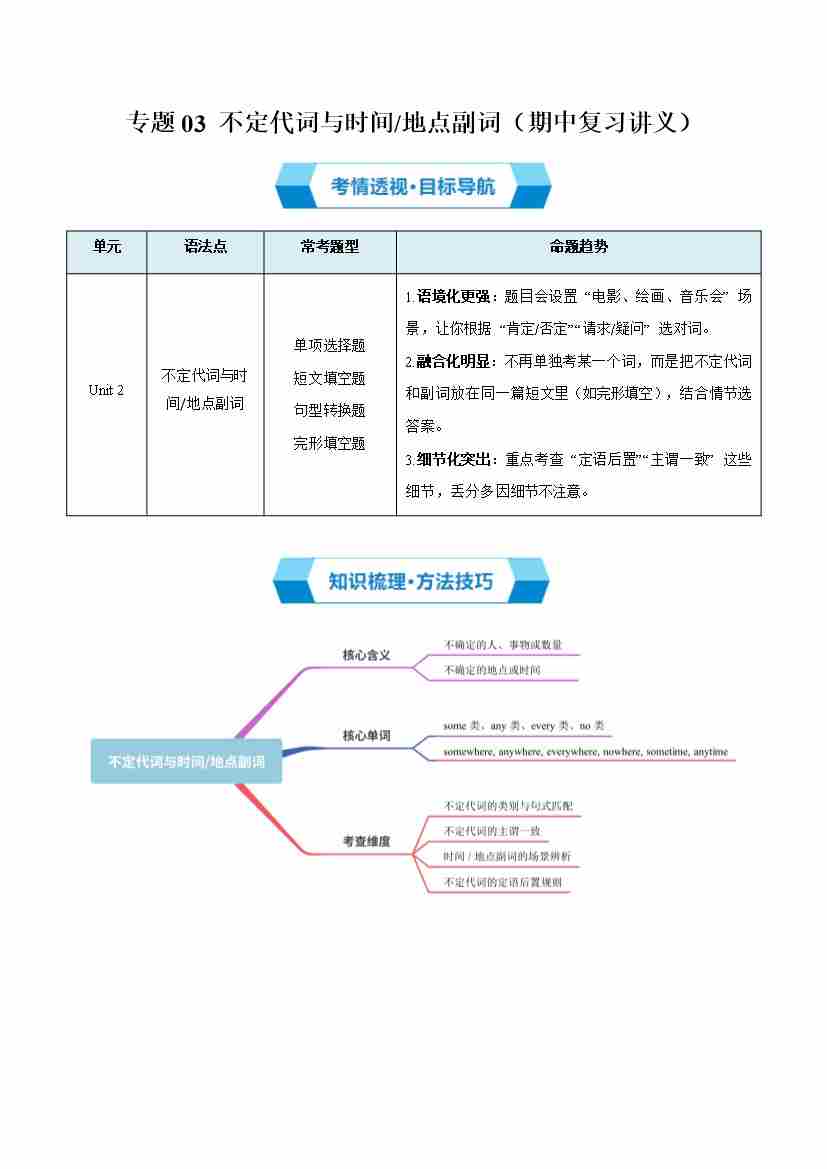 专题03 不定代词与时间&地点副词(期中复习讲义)(解析版)